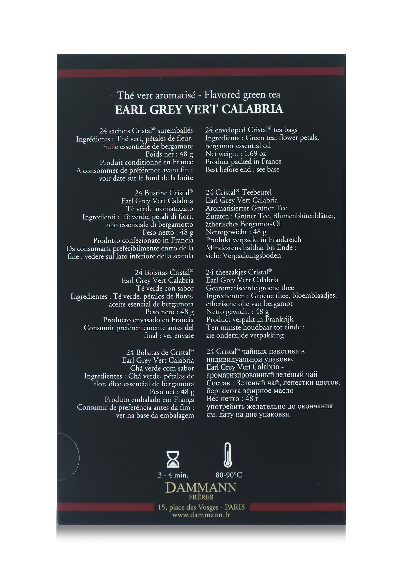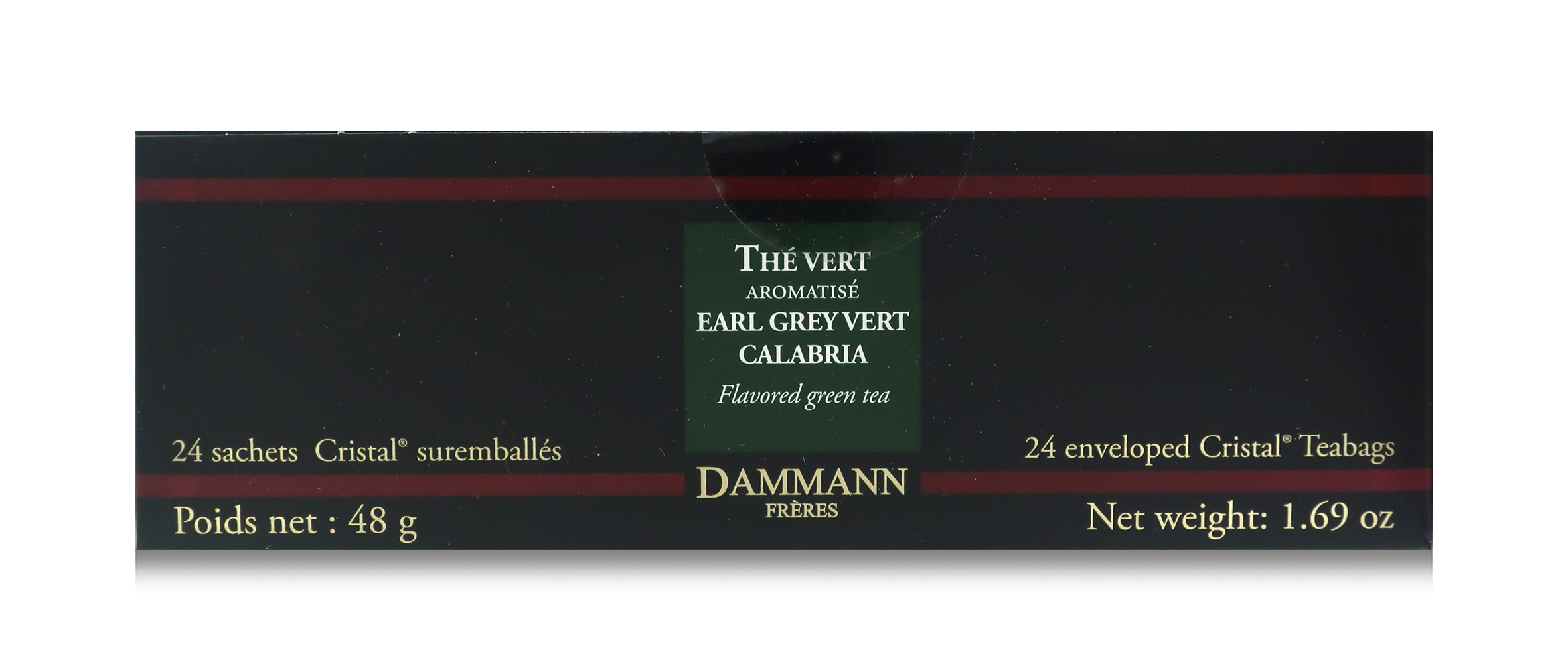 Il tè verde Earl Grey Vert Calabria di Dammann Frères è contenuto in esclusive e pratiche bustine "Cristal" incartate singolarmente.