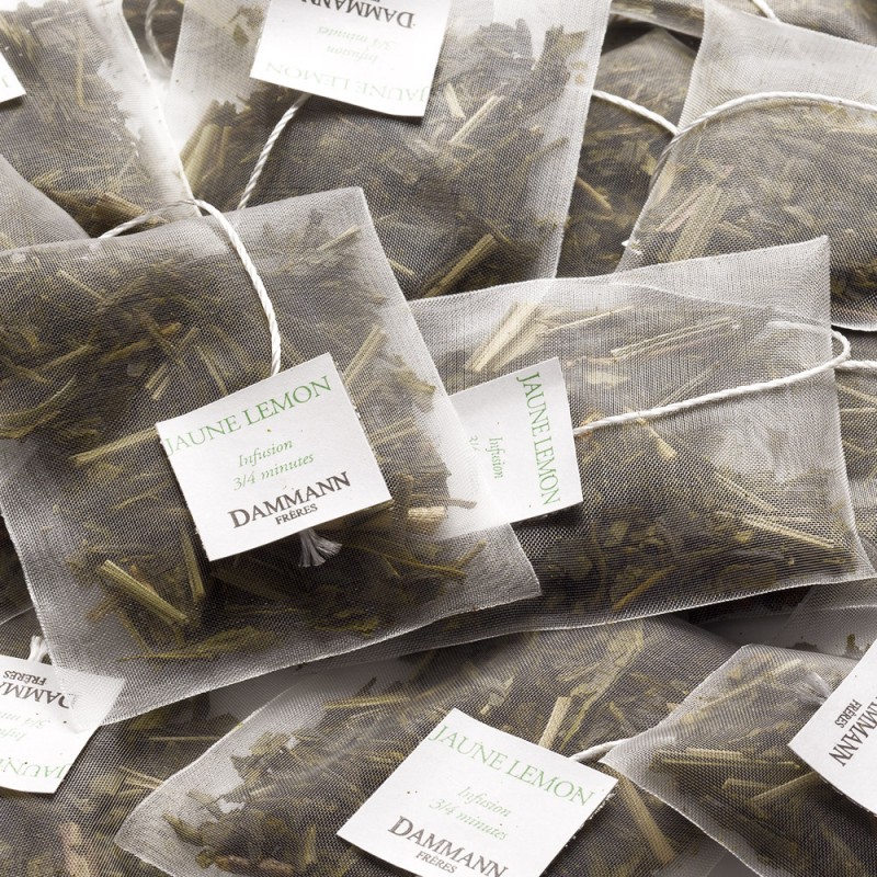 Il tè verde agli agrumi Jaune Lemon di Dammann Frères è contenuto in esclusive e pratiche bustine "Cristal".