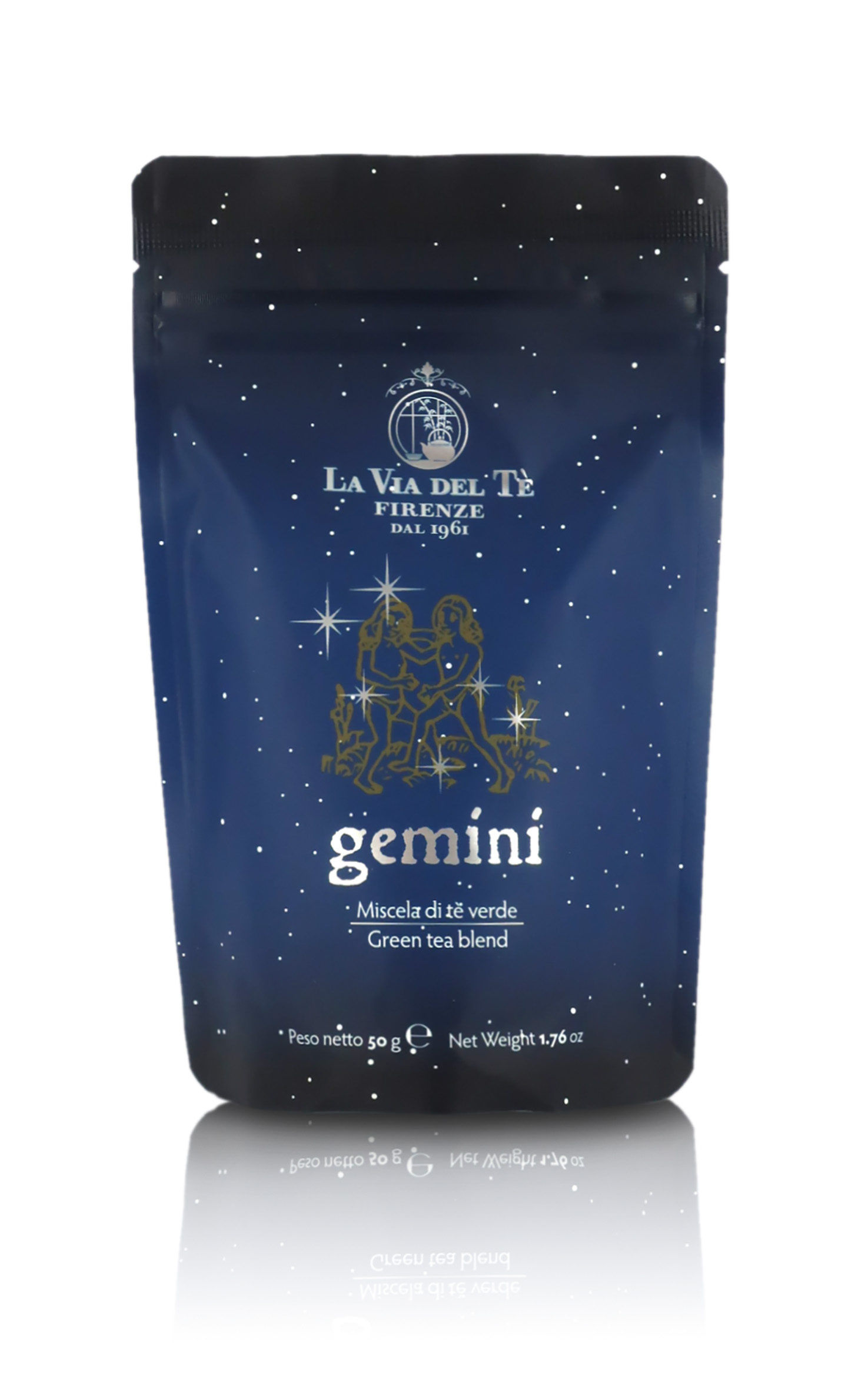 Miscela sfusa di tè verdi, piacevolmente profumata, dedicata al segno dei Gemelli. Segno di aria (come la Bilancia e l'Acquario), i nati sotto il segno dei Gemelli (21 Maggio - 21 Giugno) sono governati dagli influssi del pianeta Mercurio e si distinguono per curiosità e spinta verso la conoscenza del nuovo. La Via del Tè dedica ai Gemelli una miscela leggera e fresca realizzata con tè verdi e gelsomino, piacevolmente arricchita da lime, ciliegia e mango. Vanta un aroma soave fruttato e floreale, un colore giallo scuro tendente al dorato e un gusto equilibrato e leggero, in cui spicca una leggera nota erbacea tipica del tè verde.