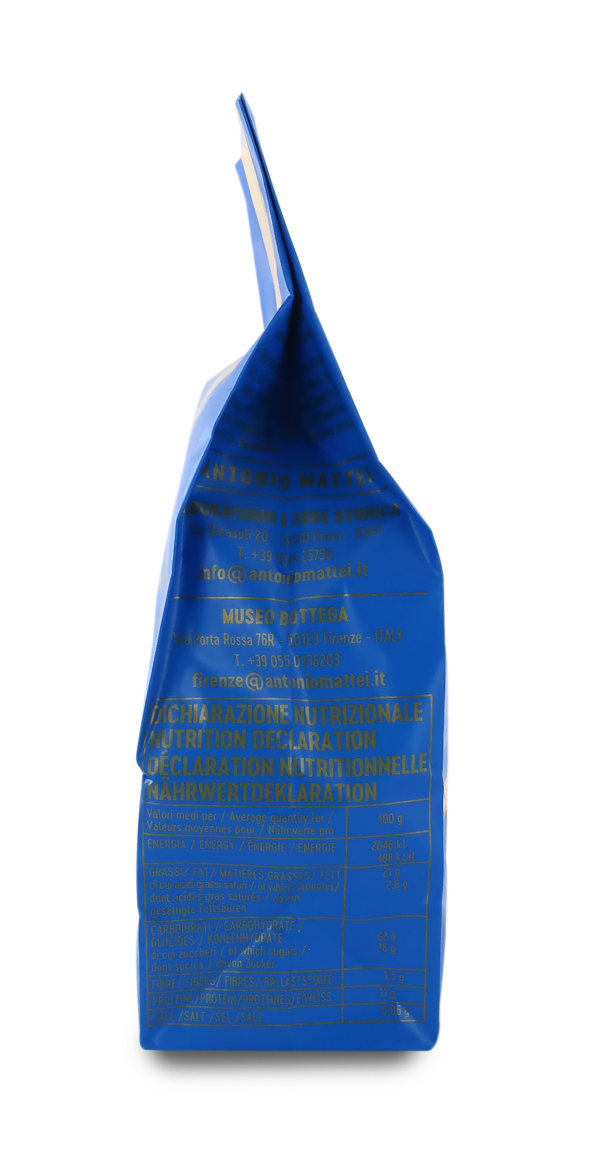 La Premiata Fabbrica di Biscotti Mattei nasce a Prato nel 1858 sfornando il famoso biscotto tradizionale alle mandorle, simbolo della città toscana. La qualità dei biscotti Mattei viene subito riconosciuta nella penisola tanto quanto al di fuori dei suoi confini, anche attraverso una menzione d’onore all’Esposizione Universale di Parigi nel 1867. Il «Piccolo Museo Bottega», aperto nel cuore di Firenze, illustra la storia dei celeberrimi cantucci alla mandorla e rende omaggio a un'attività dolciaria che dura ormai da più di 160 anni. Mattei non solo è citato da Hermann Hesse, ma vanta tra i suoi affezionati clienti anche l’ex-presidente degli Stati Uniti Bill Clinton e Carlo Azeglio Ciampi.
