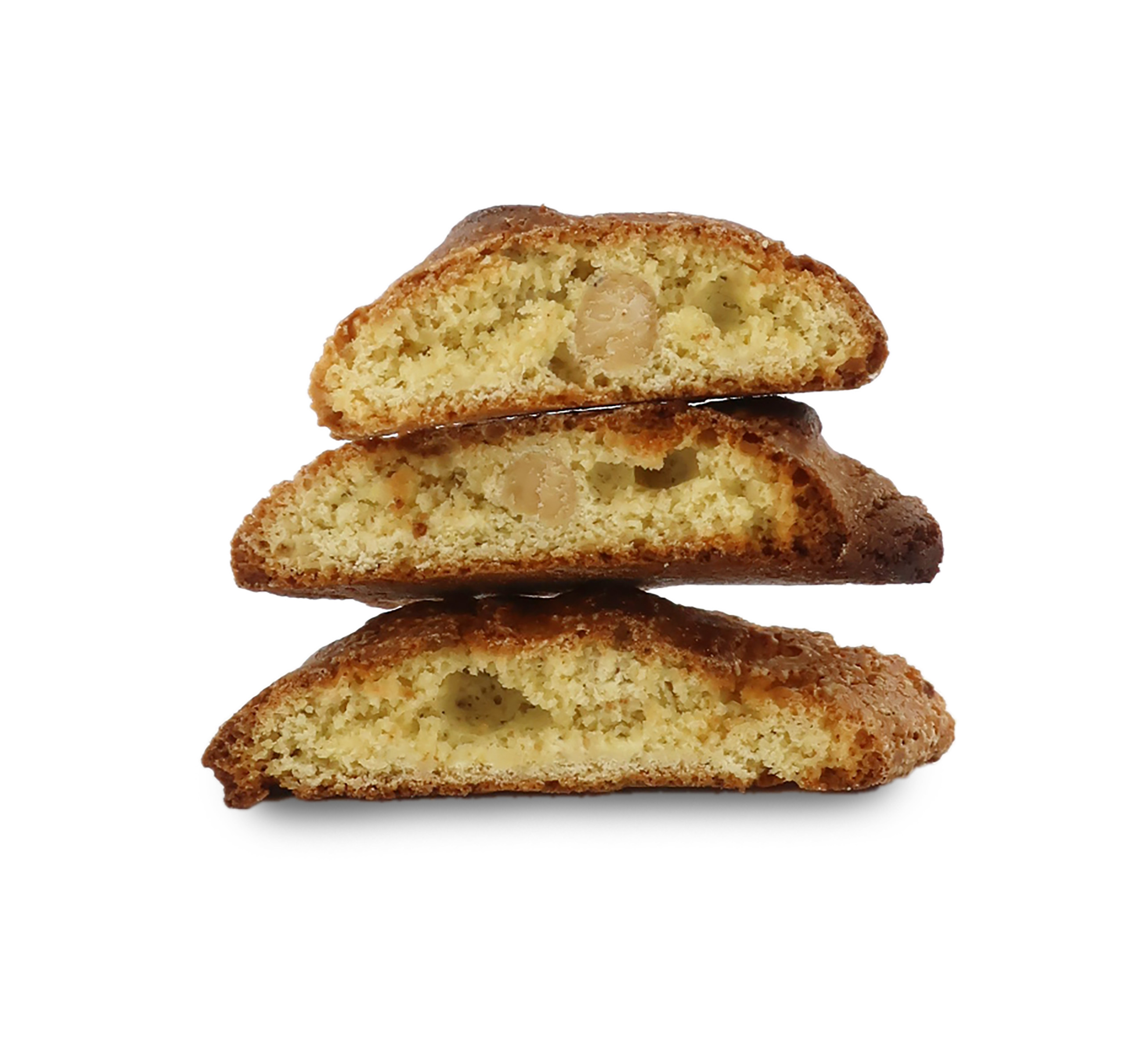 Nel 2019, Mattei realizza il cantuccio con nocciole, ancora più goloso! Per la sua preparazione, vengono selezionate pregiate Nocciole Piemonte IGP, nocciole trilobate che si distinguono per la loro significativa grammatura e un attento grado di tostatura.