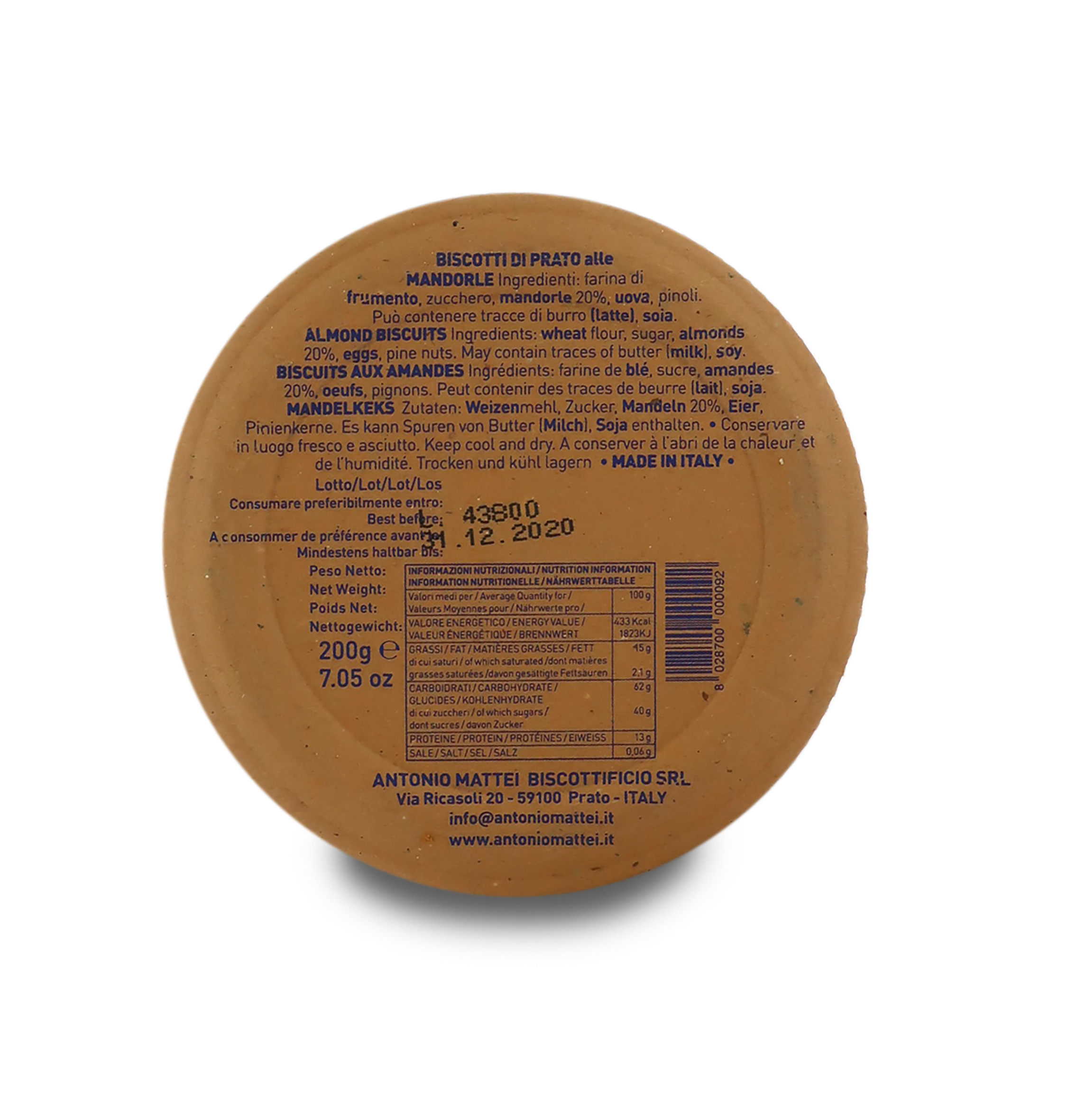 I Biscotti di Prato, conosciuti col nome di cantucci o cantuccini, sono uno dei biscotti tradizionali italiani per eccellenza. Pietra miliare della pasticceria classica toscana, i cantucci di Prato sono perfetti come dolce fine pasto. Mattei, nel rispetto della tradizione, propone questi cantucci di qualità superiore, utilizzando ingredienti genuini e mandorle attentamente selezionate per la loro grammatura e il loro grado di tostatura.