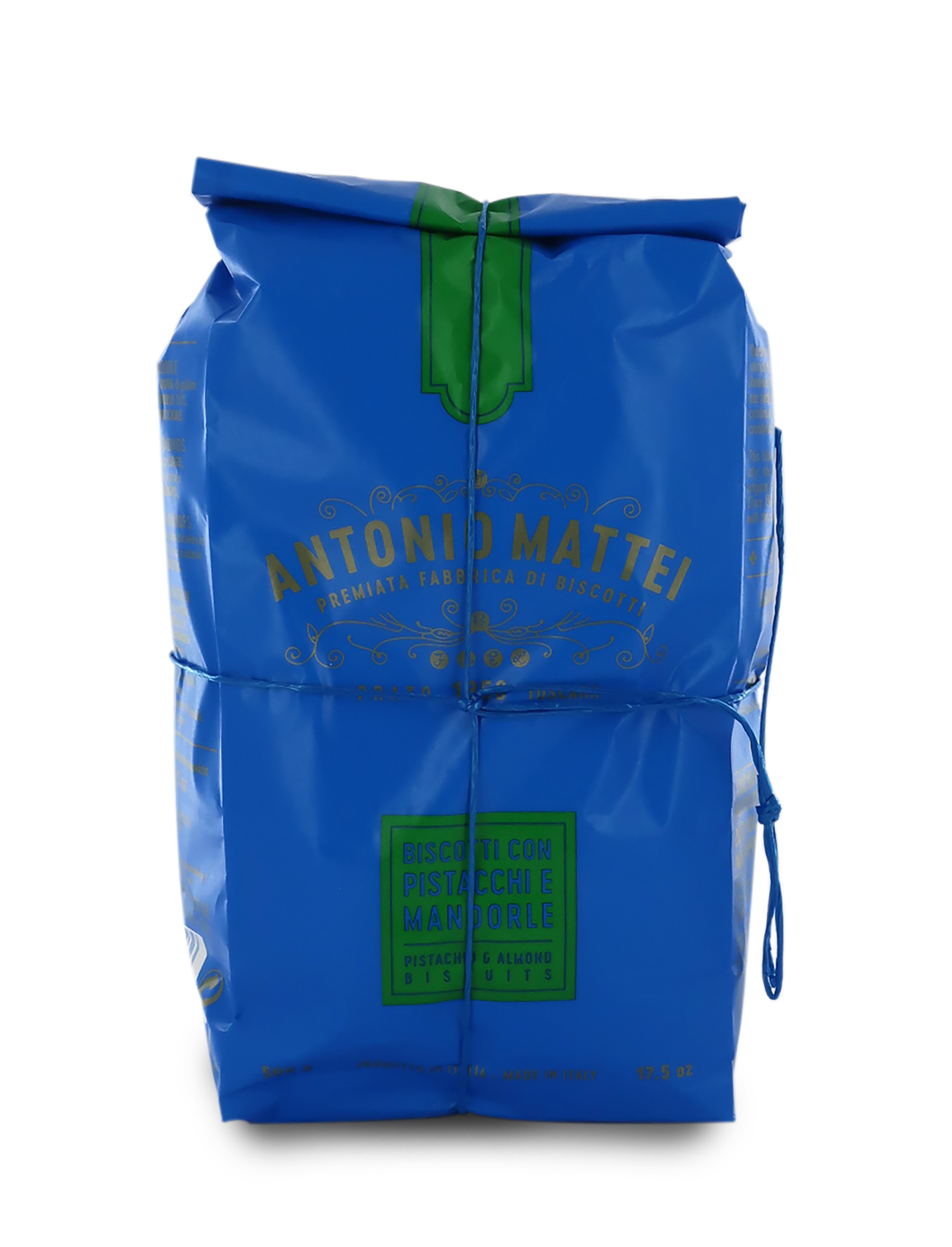 Nel 2017, Mattei realizza il cantuccio con pistacchi e mandorle, ancora più goloso! Per la sua preparazione, vengono selezionati pregiati pistacchi e mandorle che spiccano per la loro grammatura e l'attento grado di tostatura.