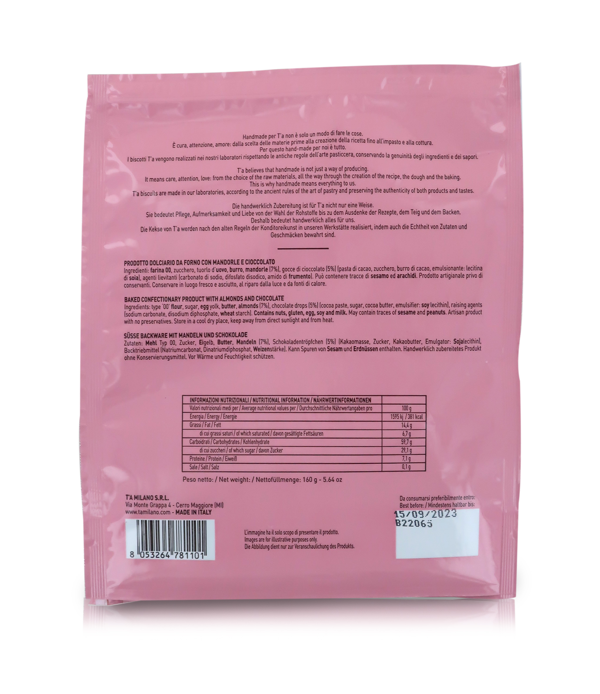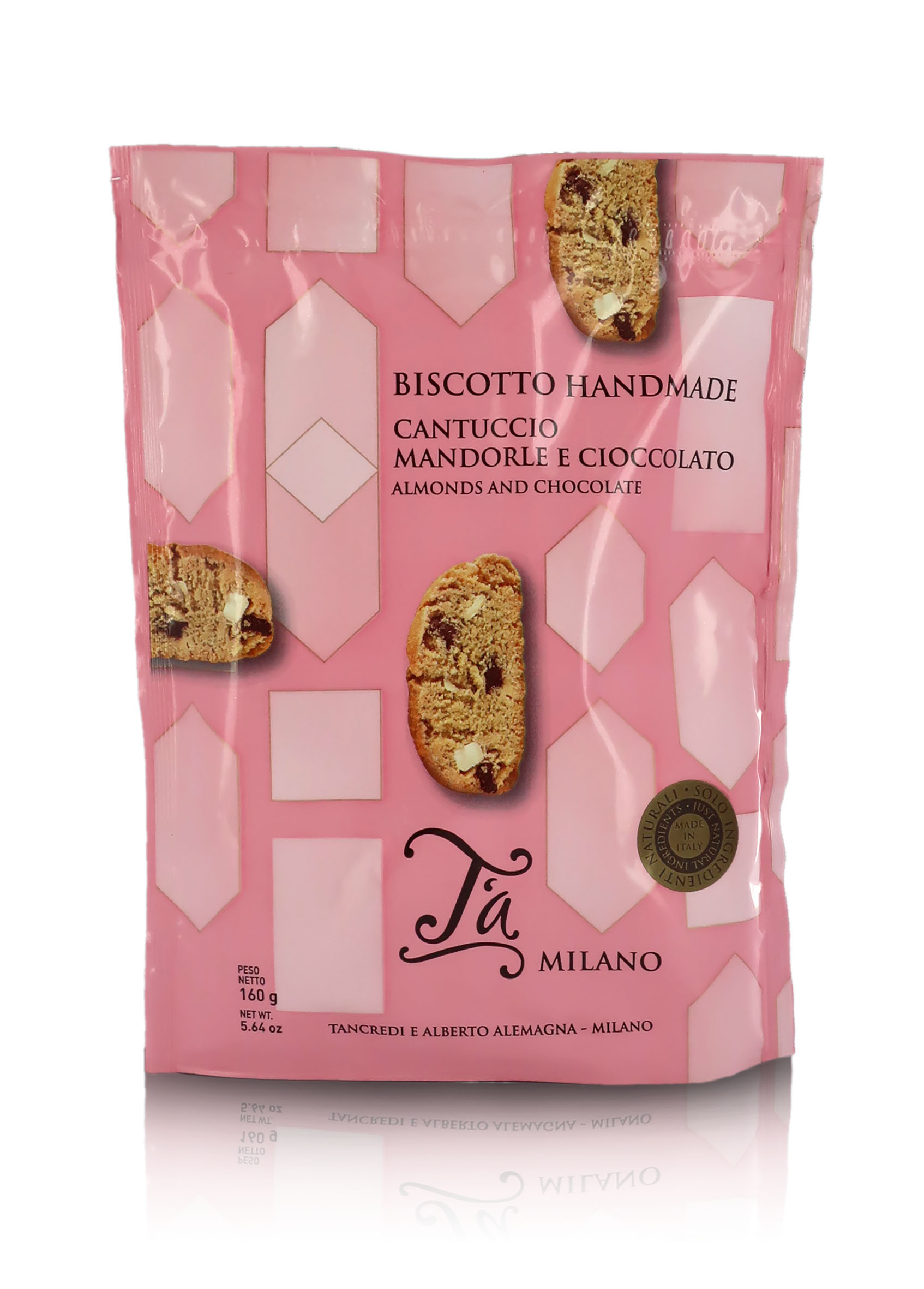 T'a Milano Sacchetto di fragranti biscotti cantucci con mandorle e cioccolato, fatti a mano - 160g