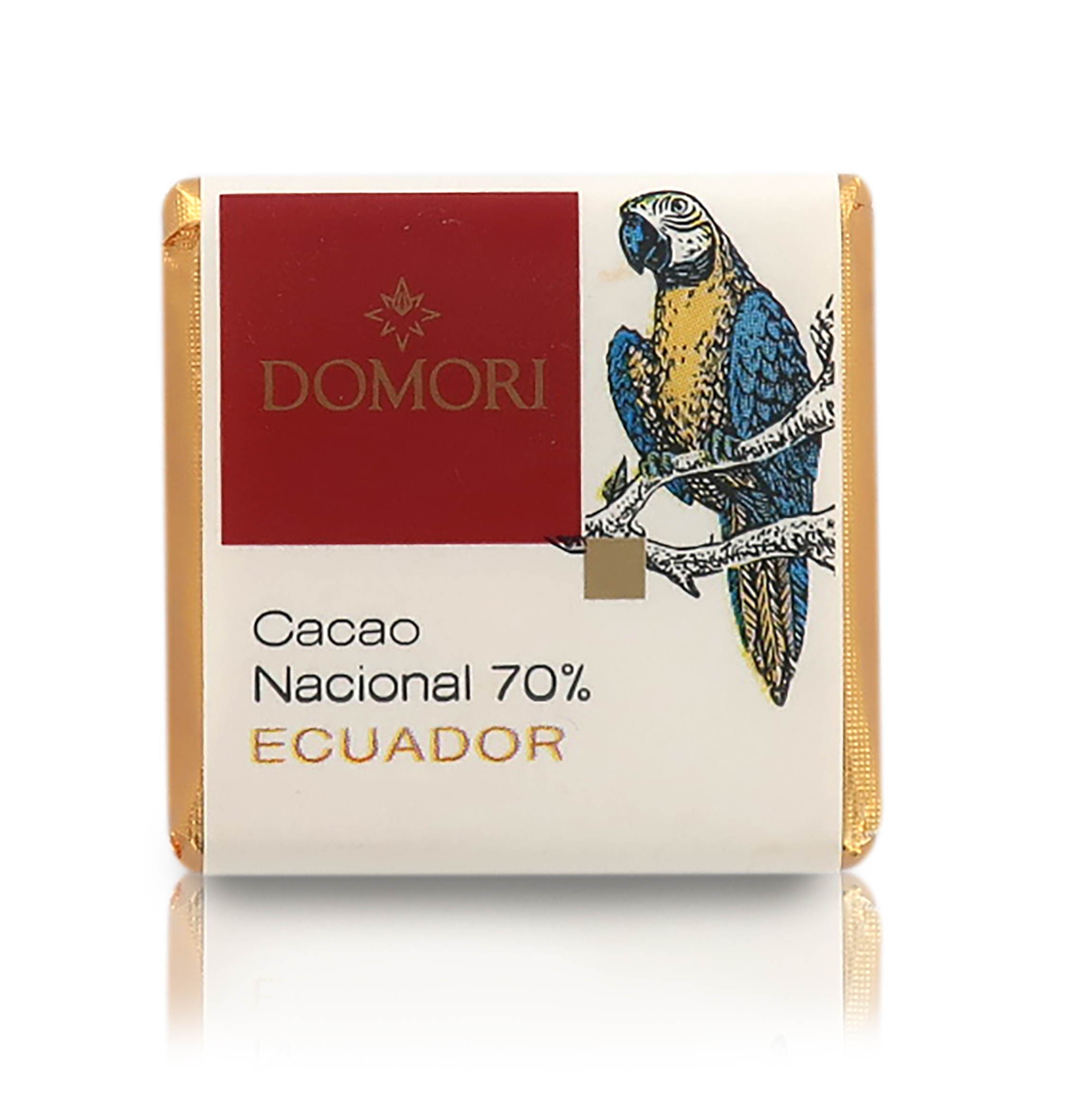 Cioccolatini Napolitain realizzati con 70% di cacao ecuadoregno dalla rotondità straordinaria e dalle eleganti note aromatiche di fiori bianchi, frutta essiccata e spezie. Confezione da 1 chilogrammo, contenente circa 185 cioccolatini Napolitain.