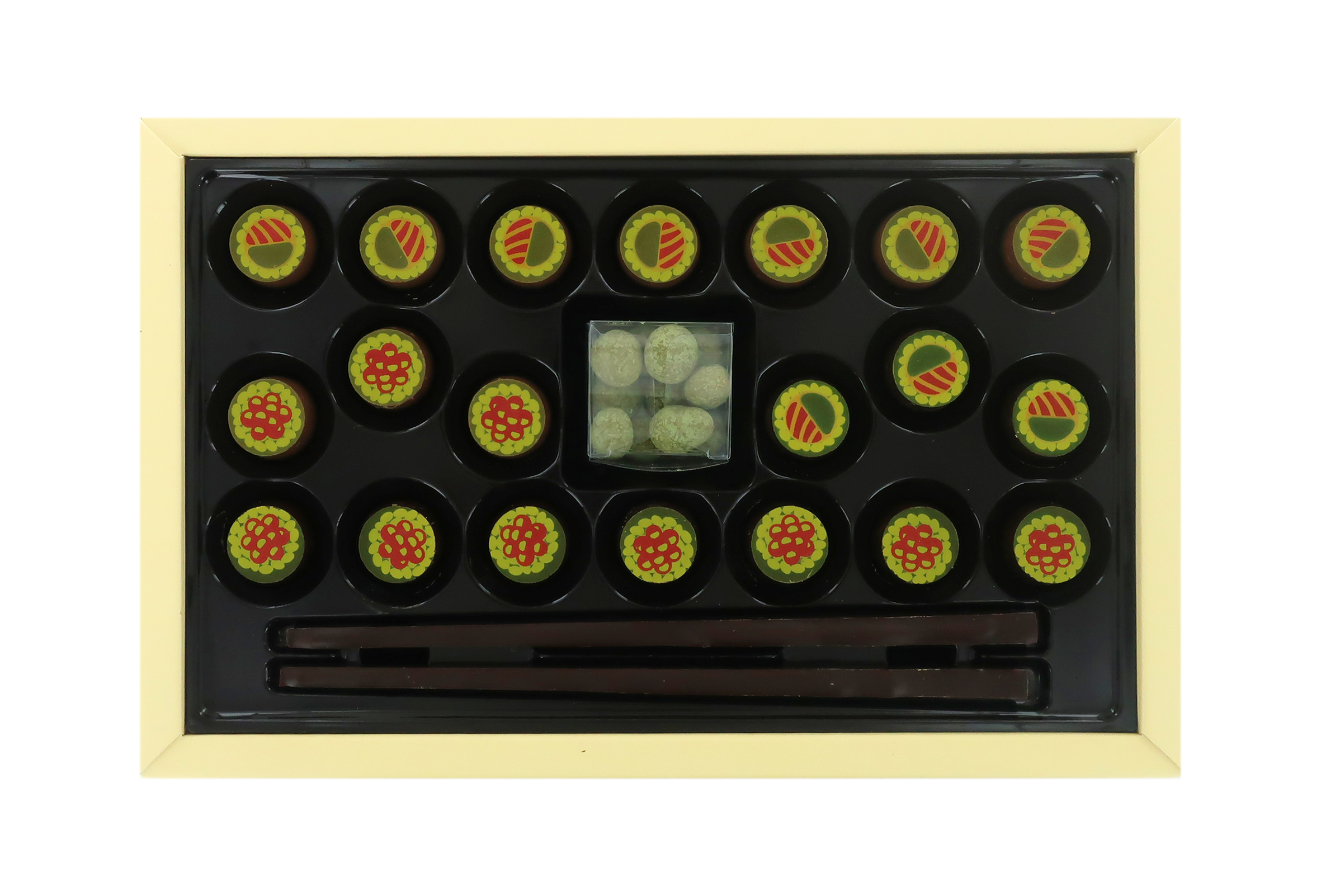 CG Ciocosushi, Scatola 20 Praline Ripiene a Forma di Sushi, Cioccolatini Artigianali Assortiti con Ripieno, Praline di Cioccolato Gourmet in Confezione Regalo, 180g