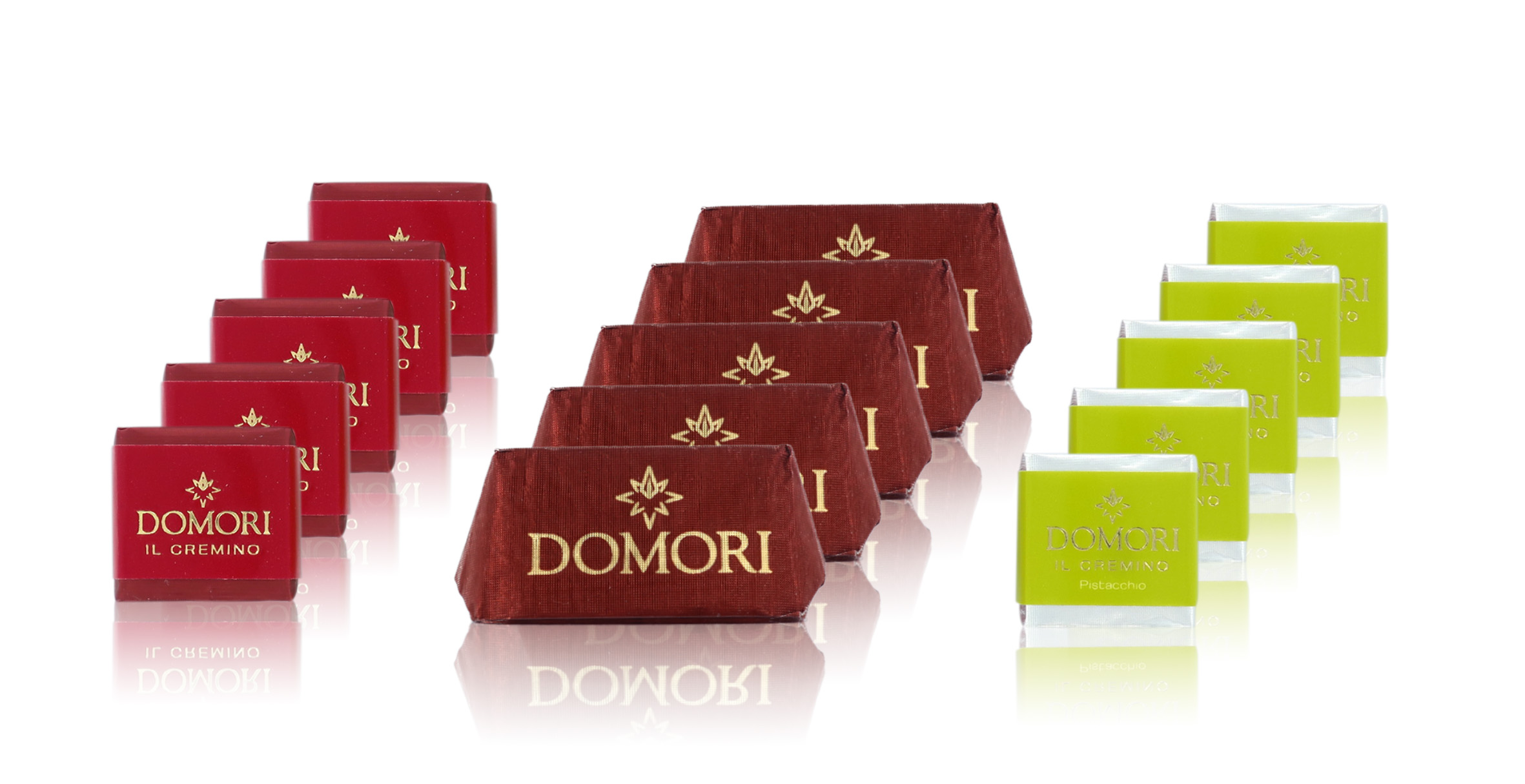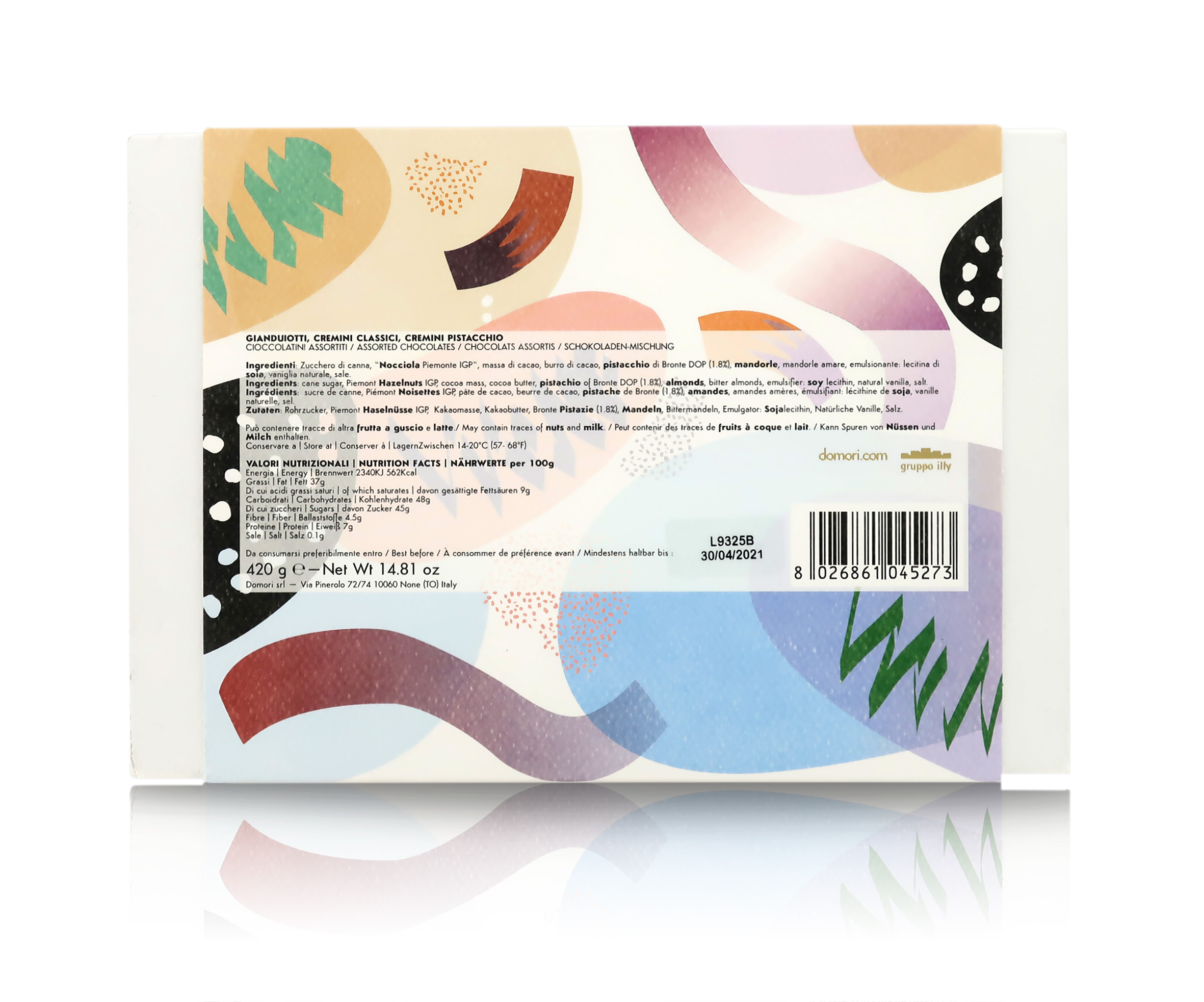 La gioiosa confezione regalo n° 6 contiene mini-gianduiotti, cremini al pistacchio e classici, tutti incartati singolarmente e accomunati dalla qualità Domori, dall'inconfondibile cacao aromatico e dal gusto pieno della NOCCIOLA.