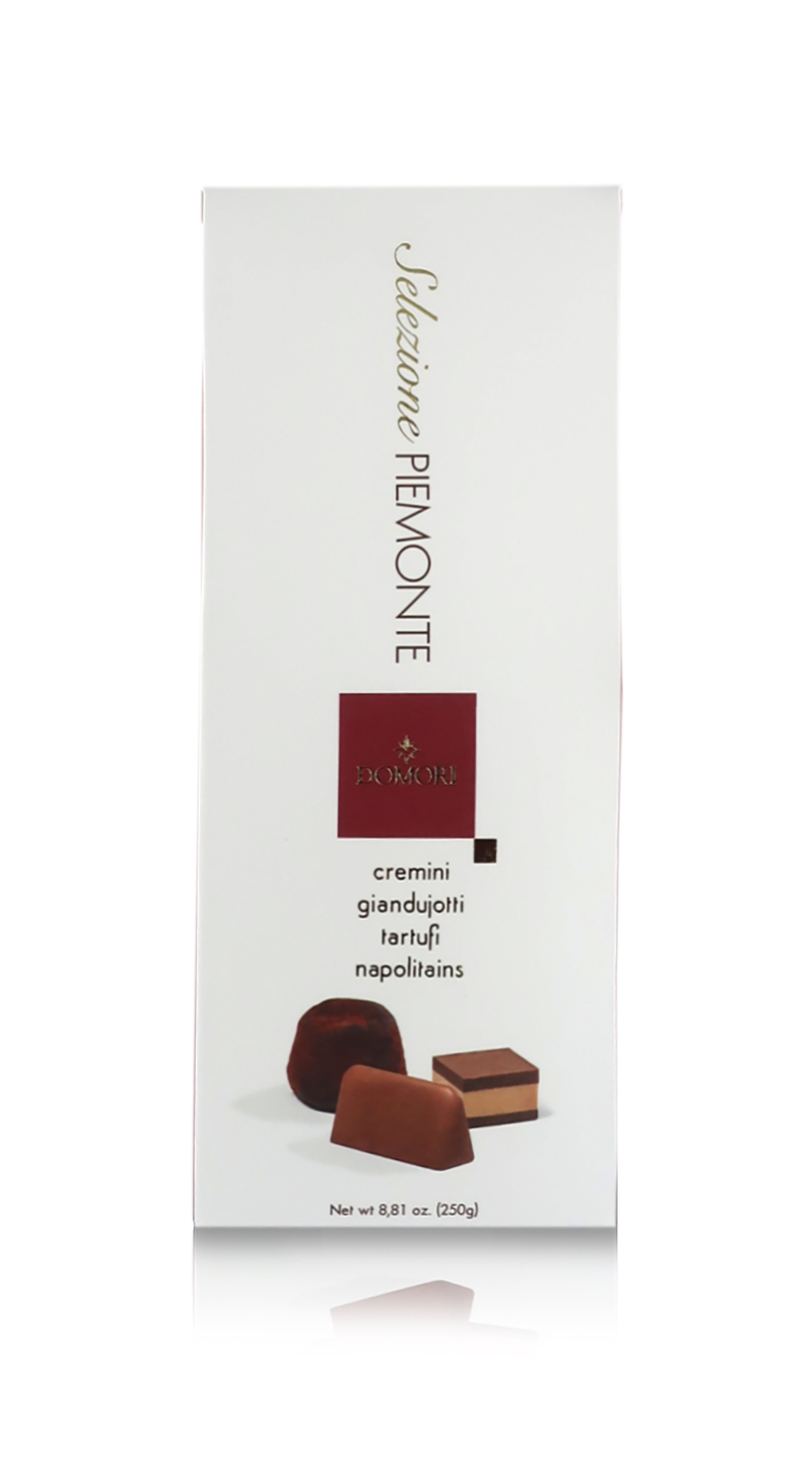 Domori Selezione Piemonte, Assortimento di Cioccolatini per Degustazione Cioccolato: Cremini Classici, Gianduiotti Classici, Tartufi Neri e Napolitains Fondenti, 250g