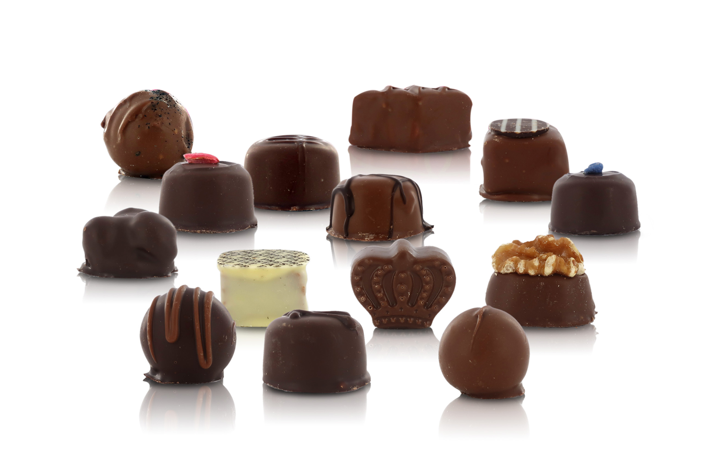Cofanetto a forma di cuore, di color rosa, giallo e arancione, dalle tinte accese, che racchiude una ricca selezione di 14 capolavori sotto forma di cioccolatini, tra cui praline, fondant, marzapane e noci ricoperte di cioccolato, ganache, gelatine e tartufi.