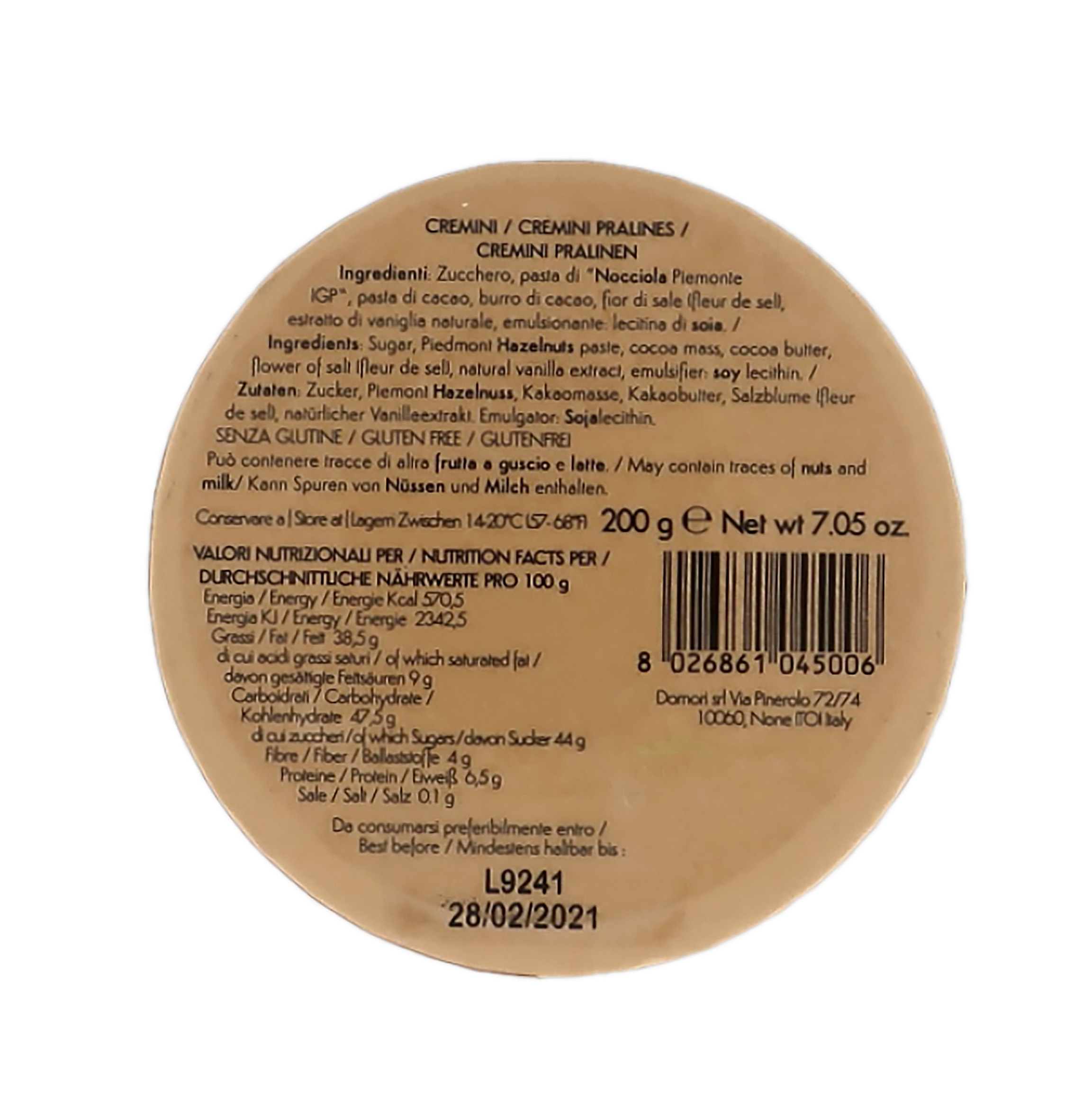 Allergeni: NOCCIOLA e soia. Può contenere tracce di altra frutta a guscio e latte.
