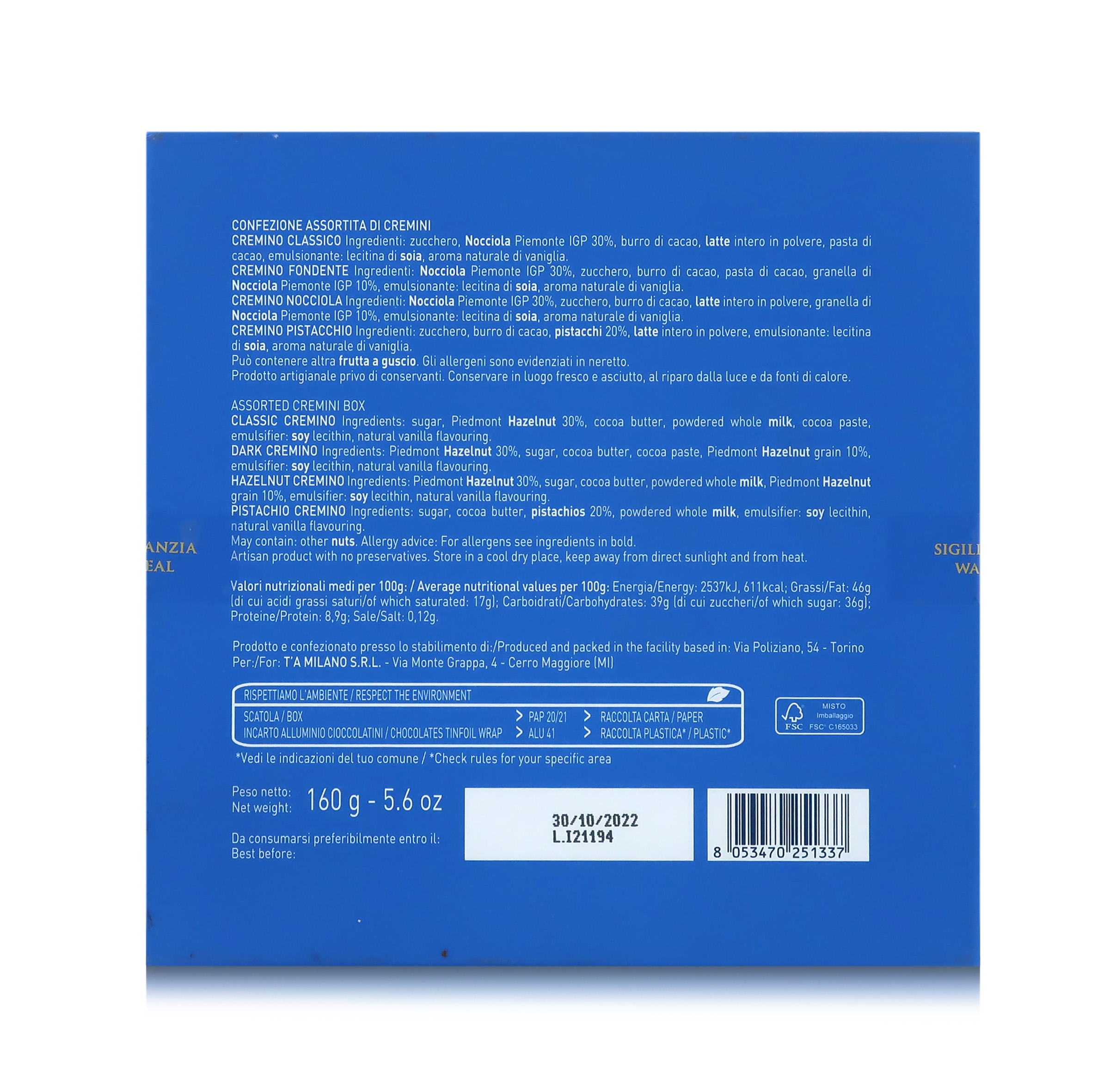 T'a Milano Confezione Degustazione Cioccolatini Cremini Artigianali Prodotti in Italia, Assortimento Cremini 4 Gusti: Fondente, Classico, Pistacchio e Nocciola, 16 Pz, 160g