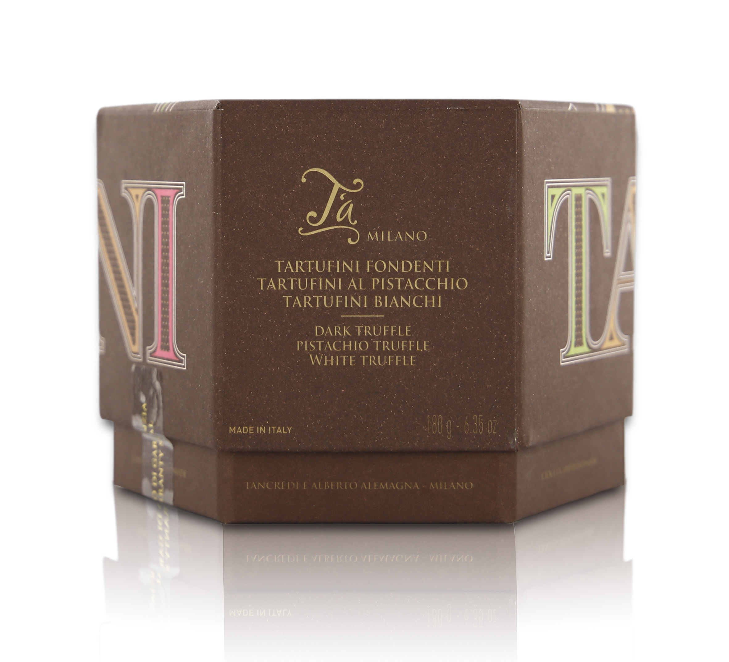 T'a Milano Confezione regalo con 21 tartufini: 7 al cioccolato bianco / 7 al fondente / 7 al fondente e pistacchio - 180g