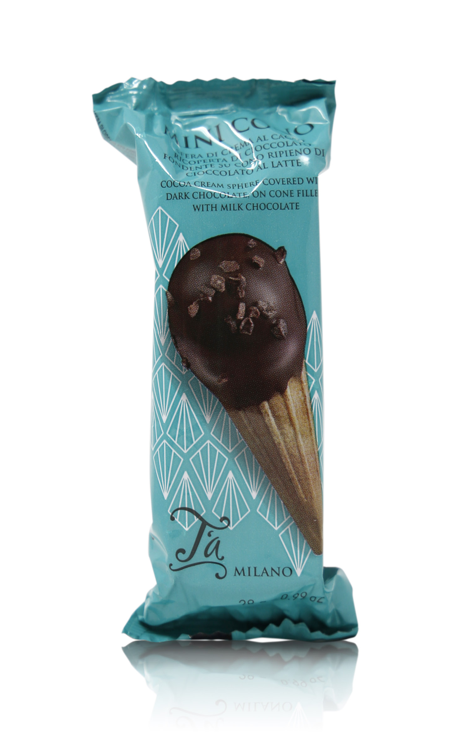 T'a Milano Mini Cono alla crema di cacao senza olio di palma, 28g, Confezione da 18 Coni