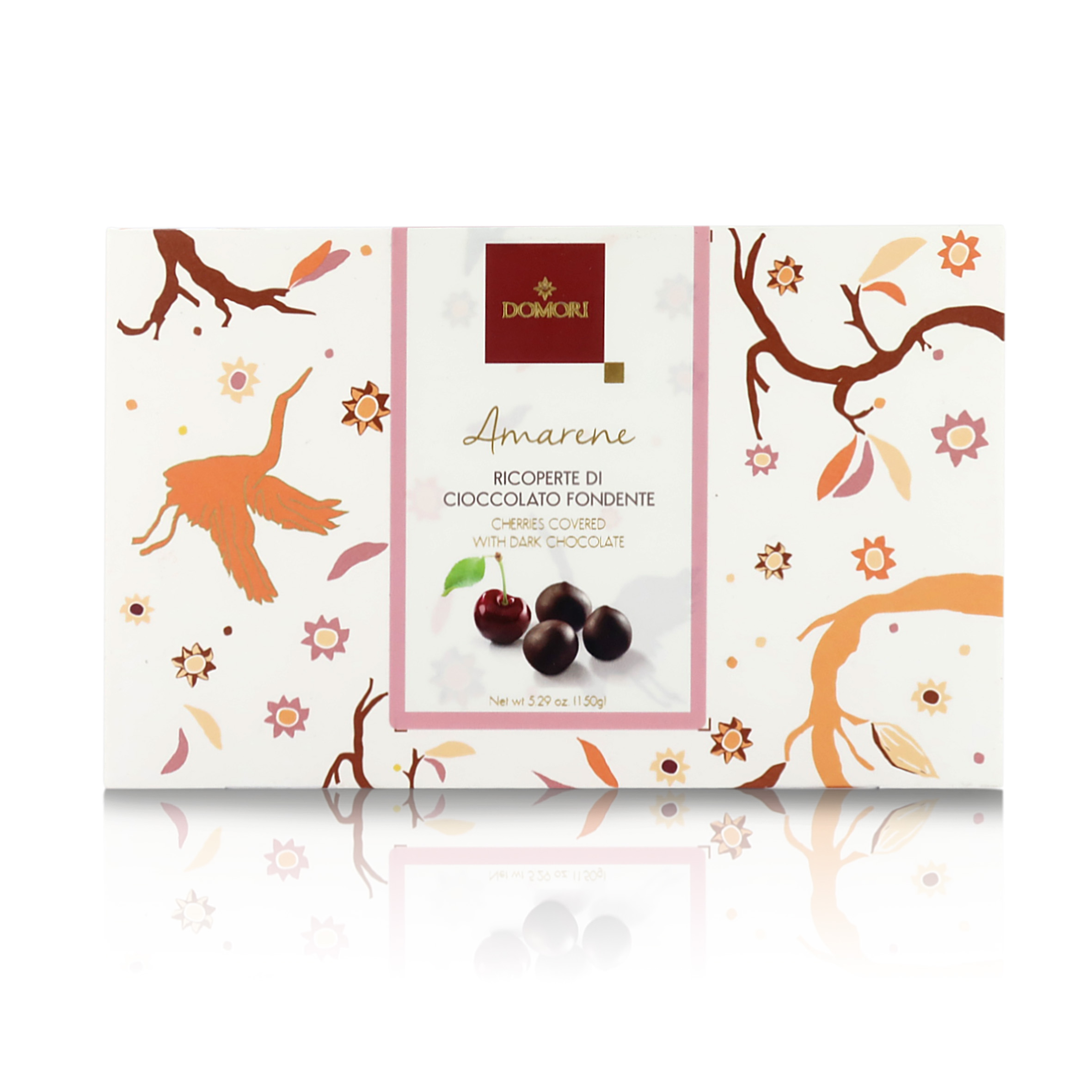 La passione per il gusto di Domori ha portato la casa cioccolatiera a proporre un accostamento classico in propria chiave: la dolcezza avvolgente di amarene sapientemente selezionate e candite da Agrimontana incontrano l'aroma intenso del cioccolato fondente di alta qualità di varietà Arriba (Ecuador). Le polpose amarene candite ricoperte di cioccolato sono lo snack gourmet ideale per le vostre dolci pause.