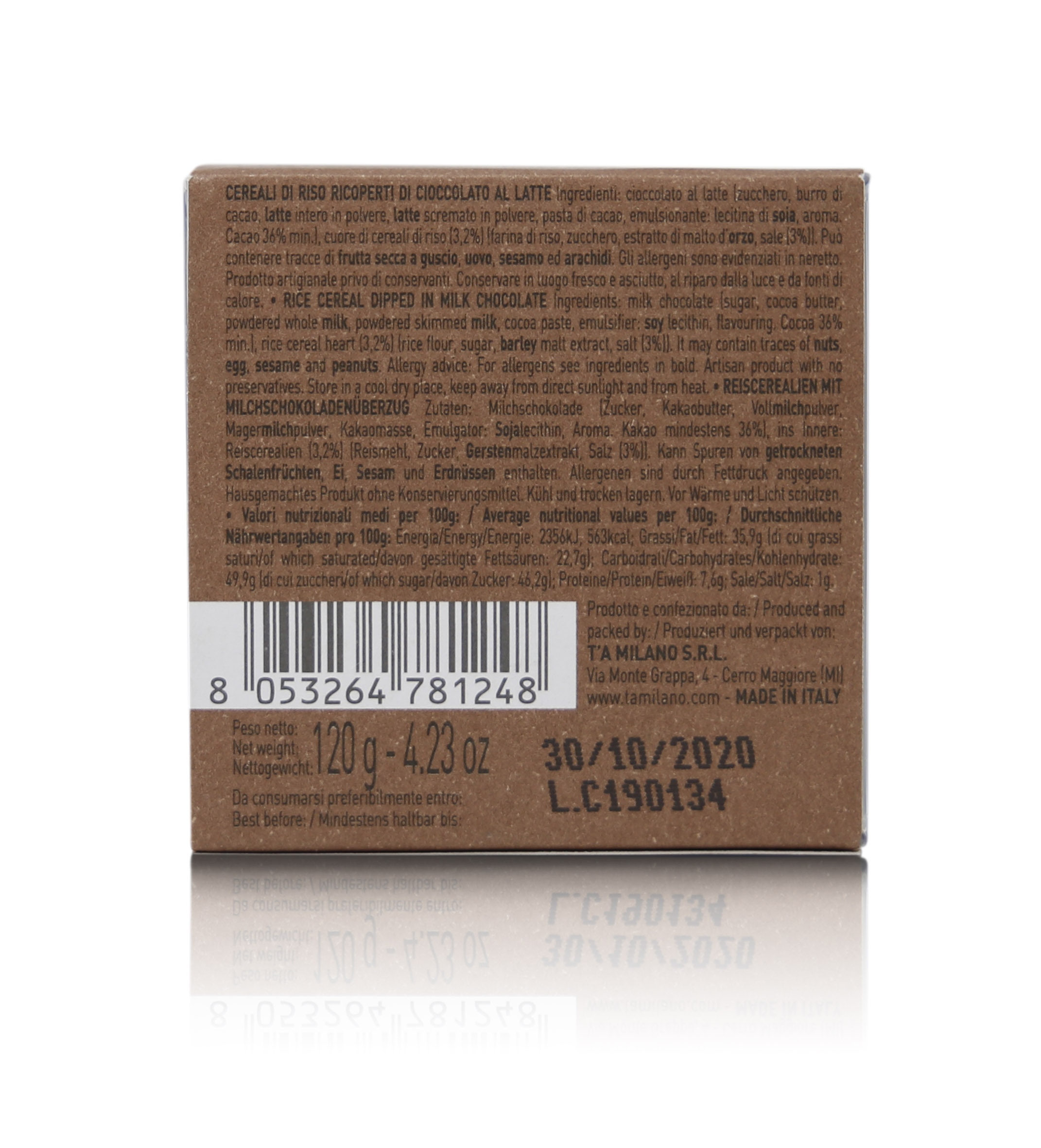 T'a Milano Dragées con "croco rice" ricoperto di cioccolato al latte 36% - 120g