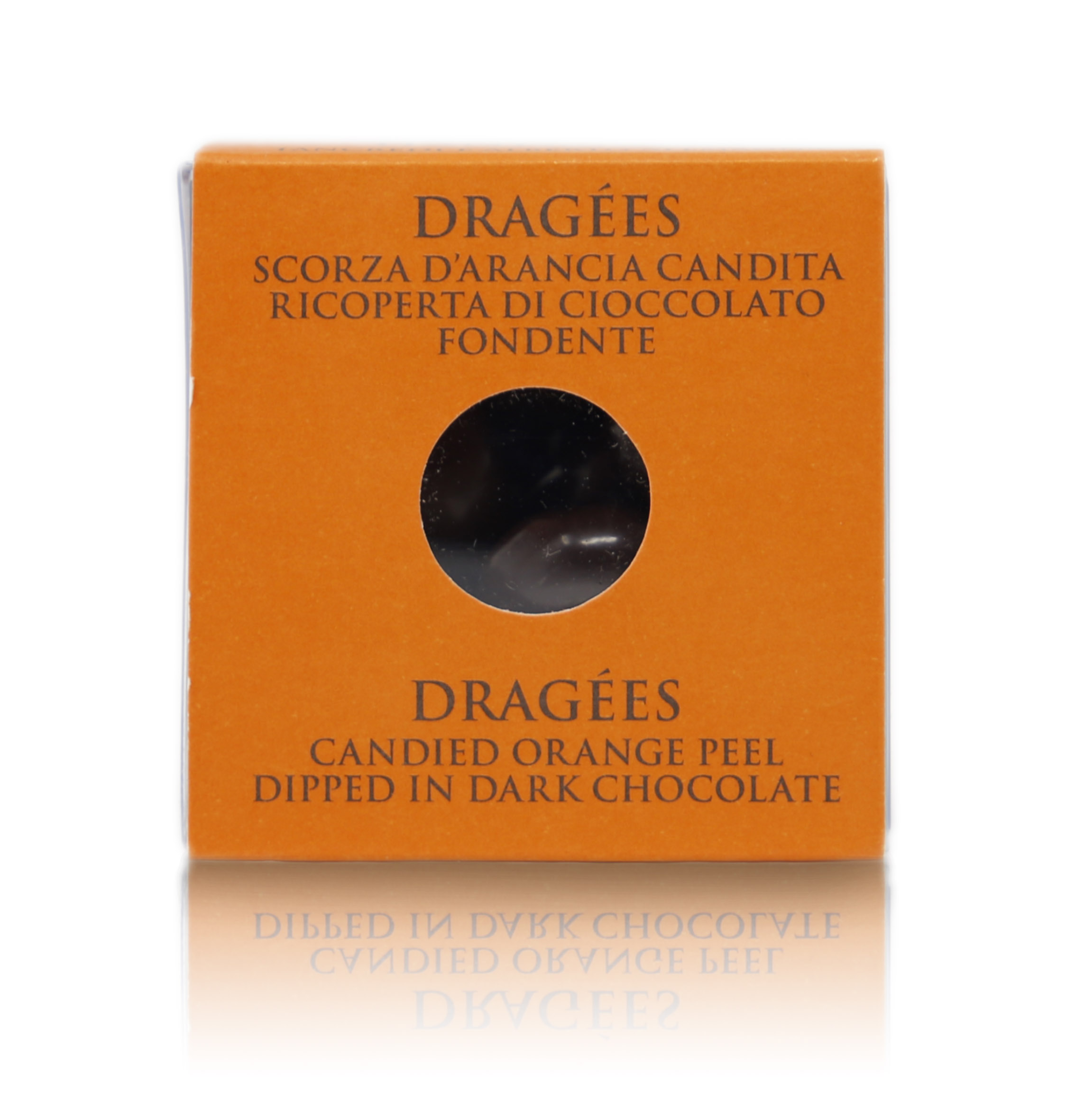 Una moderna confezione a forma di cubo, grazie ad alcuni lati trasparenti, lascia intravedere queste deliziose scorze d'arancia candite e ricoperte di cioccolato fondente (cacao: 66% minimo). I Dragées classici alla frutta candita di T'a Milano sono perfetti da offrire ai vostri ospiti insieme al caffè o come piccolo regalo per gli amanti della piccola pasticceria.