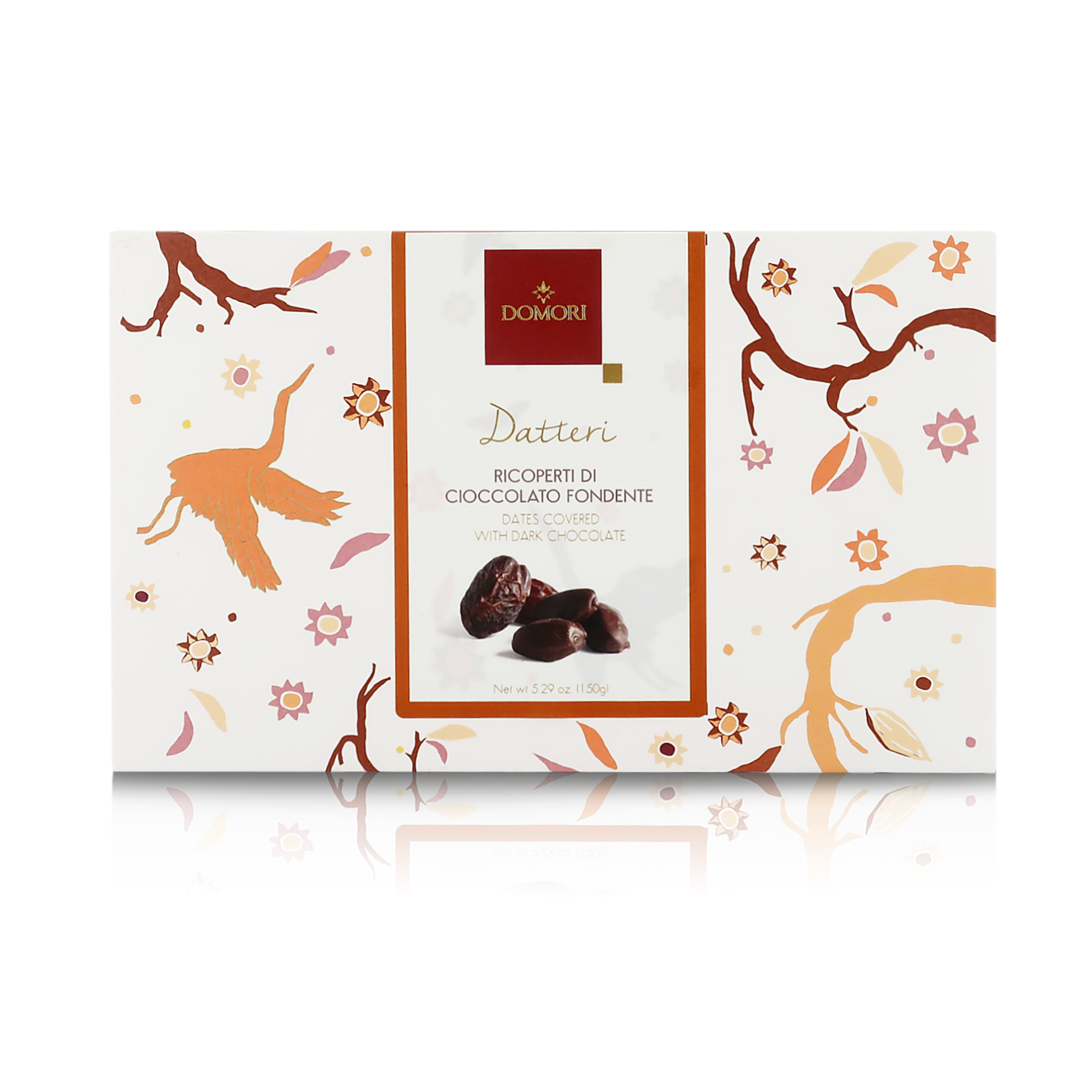 La passione per il gusto di Domori ha portato la casa cioccolatiera a proporre un accostamento classico in propria chiave: la dolcezza avvolgente di pregiati datteri Medjoum sapientemente selezionati e canditi da Agrimontana incontrano l'aroma intenso del cioccolato fondente di alta qualità di varietà Arriba (Ecuador). I polposi datteri canditi ricoperti di cioccolato sono lo snack gourmet ideale per le vostre dolci pause.
