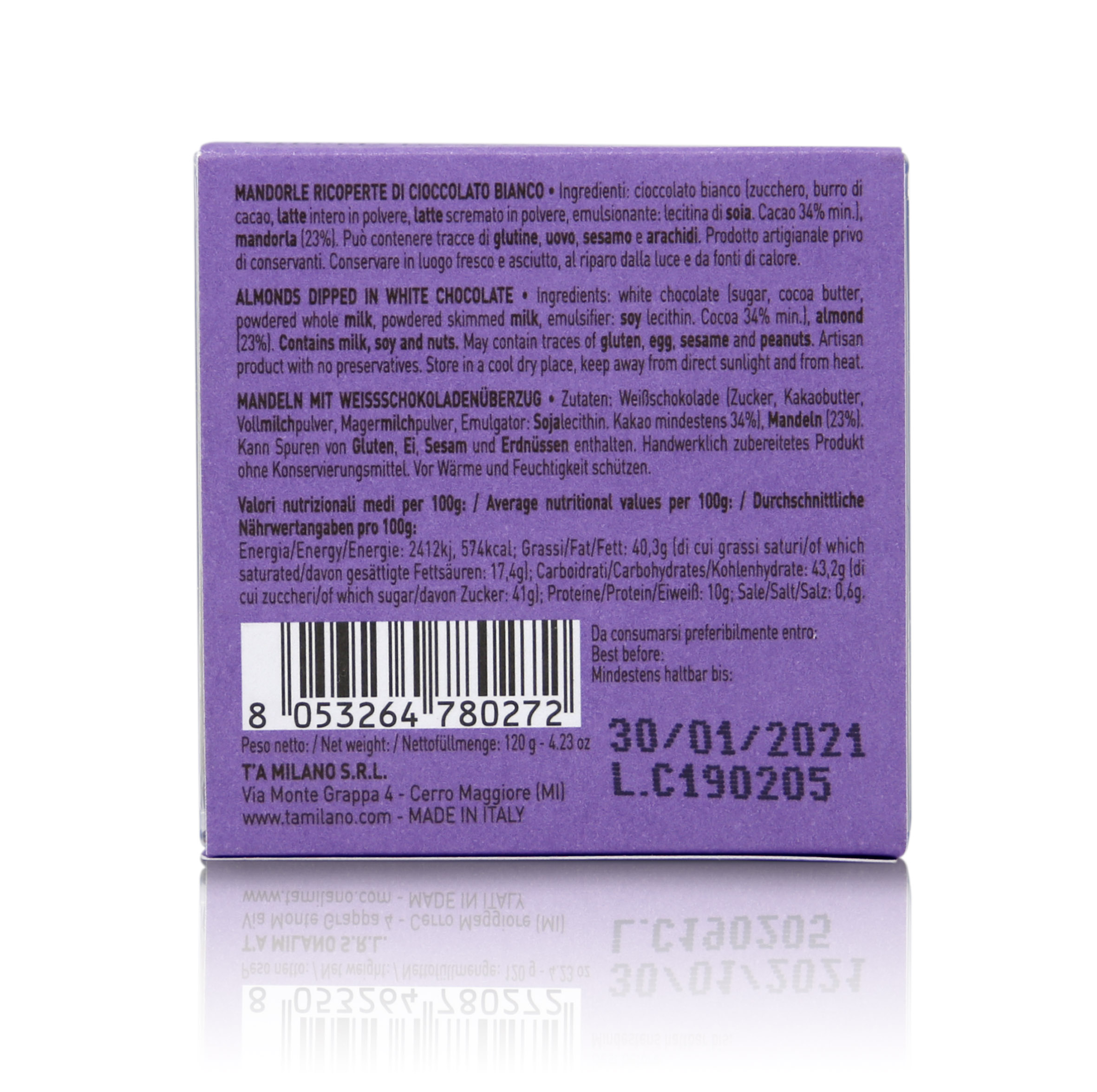 T'a Milano Dragées con mandorla ricoperta di cioccolato bianco, Praline con frutta secca - 120g