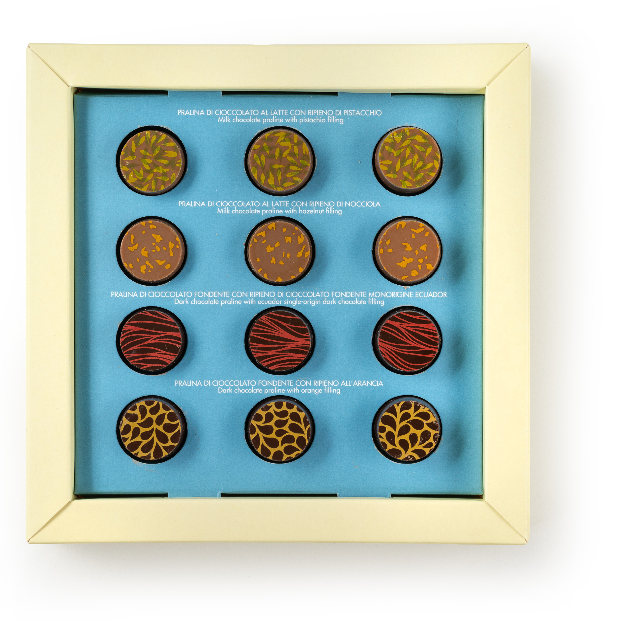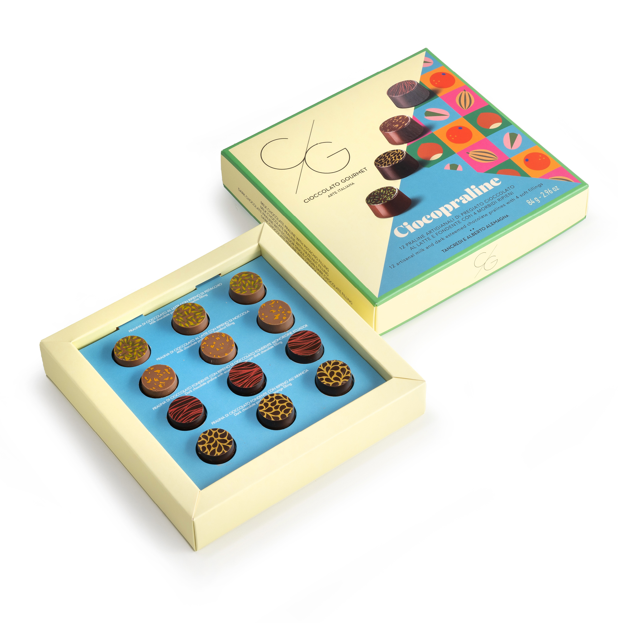 CG Ciocopraline da Cioccolato Gourmet, Praline Artigianali al Cioccolato al Latte e Fondente con Ripieno al Pistacchio, Nocciola e Arancia, Praline Ripiene, 84g