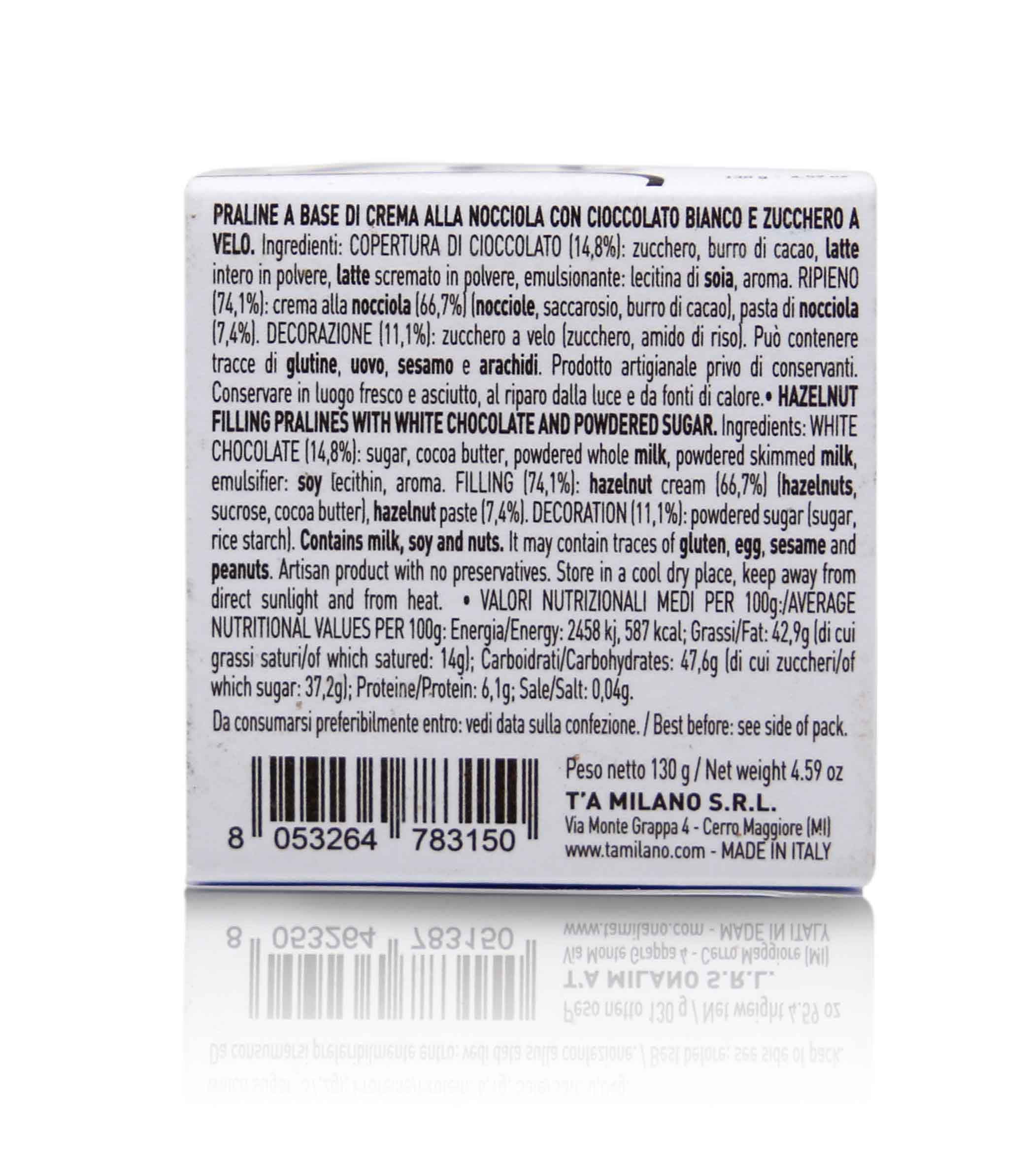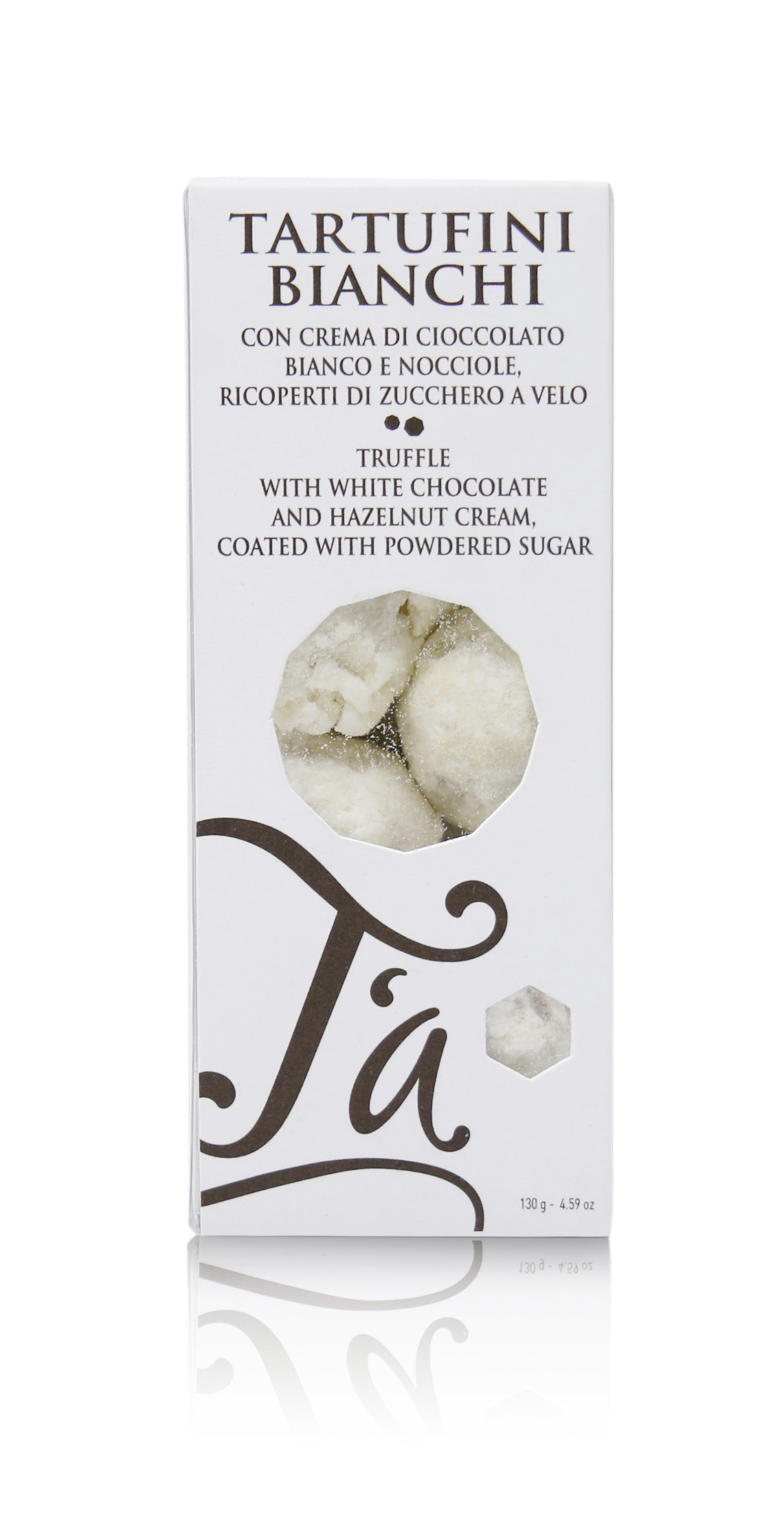 T'a Milano Tartufini bianchi con crema di cioccolato bianco e di nocciole, ricoperti di zucchero a velo - 130g