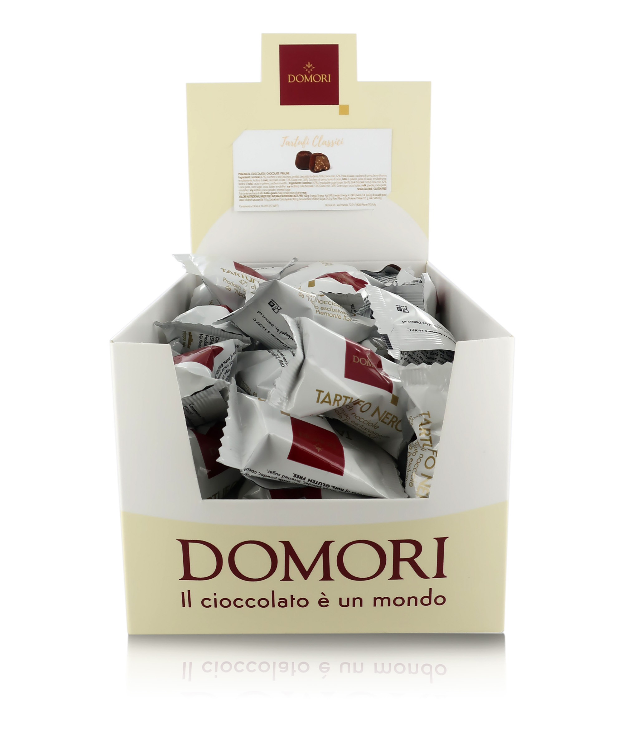 Domori offre la morbida dolcezza del classico tartufo di cioccolato, con cacao fine e NOCCIOLE Piemonte IGP. L'incarto singolo ne mantiene inalterata la fragranza per permettere a chi lo gusta di apprezzarne ogni giorno il gusto e la freschezza.