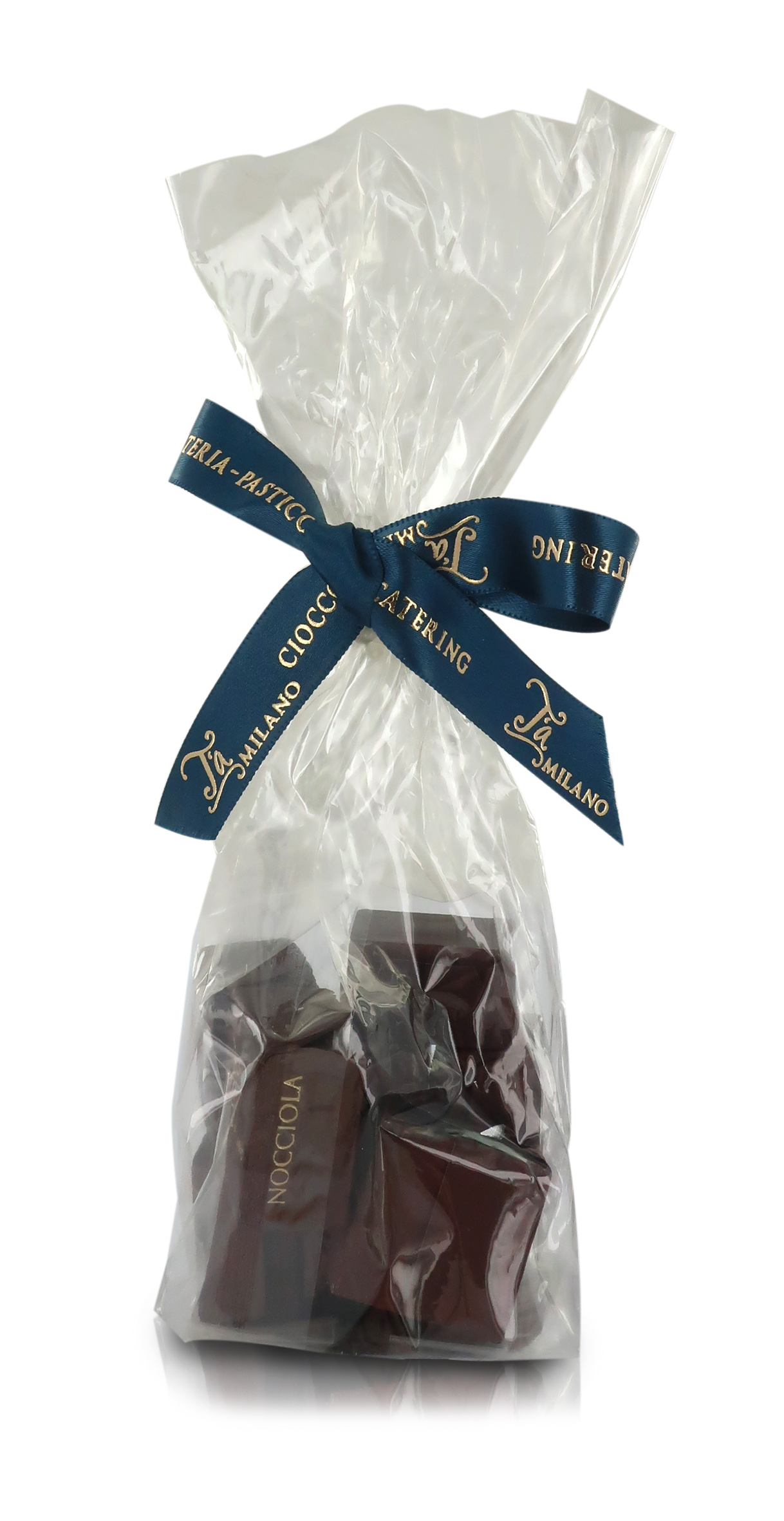 Questo sacchettino di cioccolatini cremini alla nocciola è perfetto per essere inserito in un cesto gastronomico natalizio di eccellenze italiane.