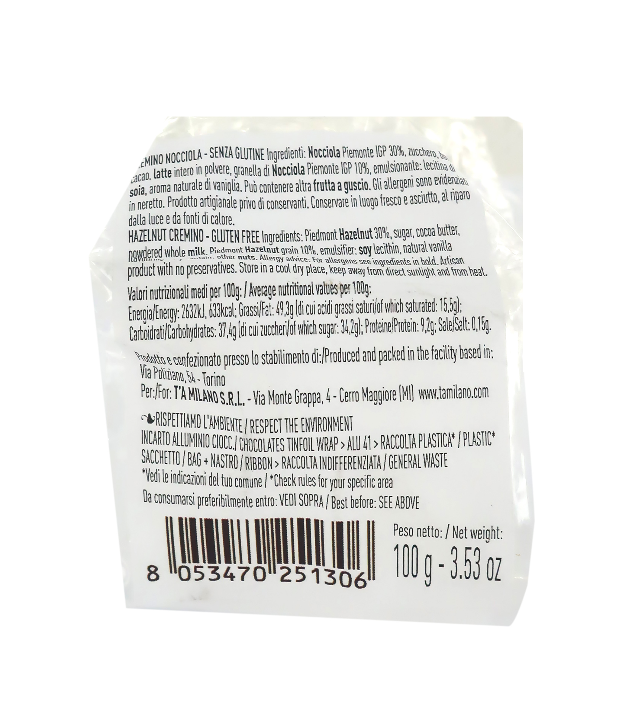 T'a Milano Sacchetto di Cioccolatini Cremini alla Nocciola Artigianali Prodotti in Italia, 100 Grammi