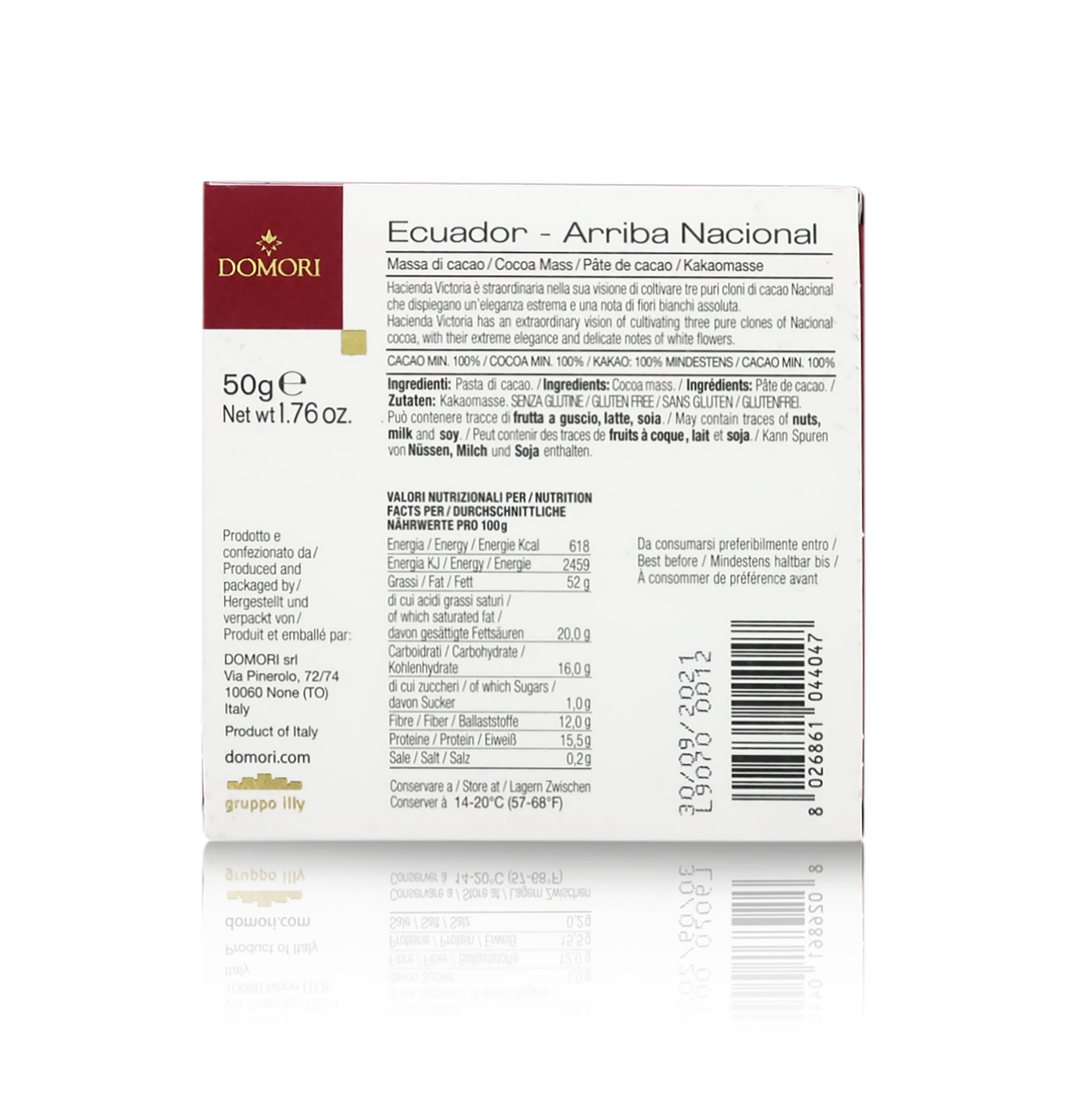 La tavoletta di massa di cacao Nacional 100% "Ecuador" è realizzata con cacao proveniente dalla Hacienda Victoria in Ecuador, impegnata nella coltivazione di cacao aromatico e volta a preservare la varietà chiamata "Arriba Nacional". Questa tavoletta di massa di cacao ecuadoregno regala una rotondità straordinaria e note aromatiche di fiori bianchi, frutta essiccata e spezie. Grazie a tali caratteristiche, risulta essere uno tra i cacao più apprezzati del mondo.