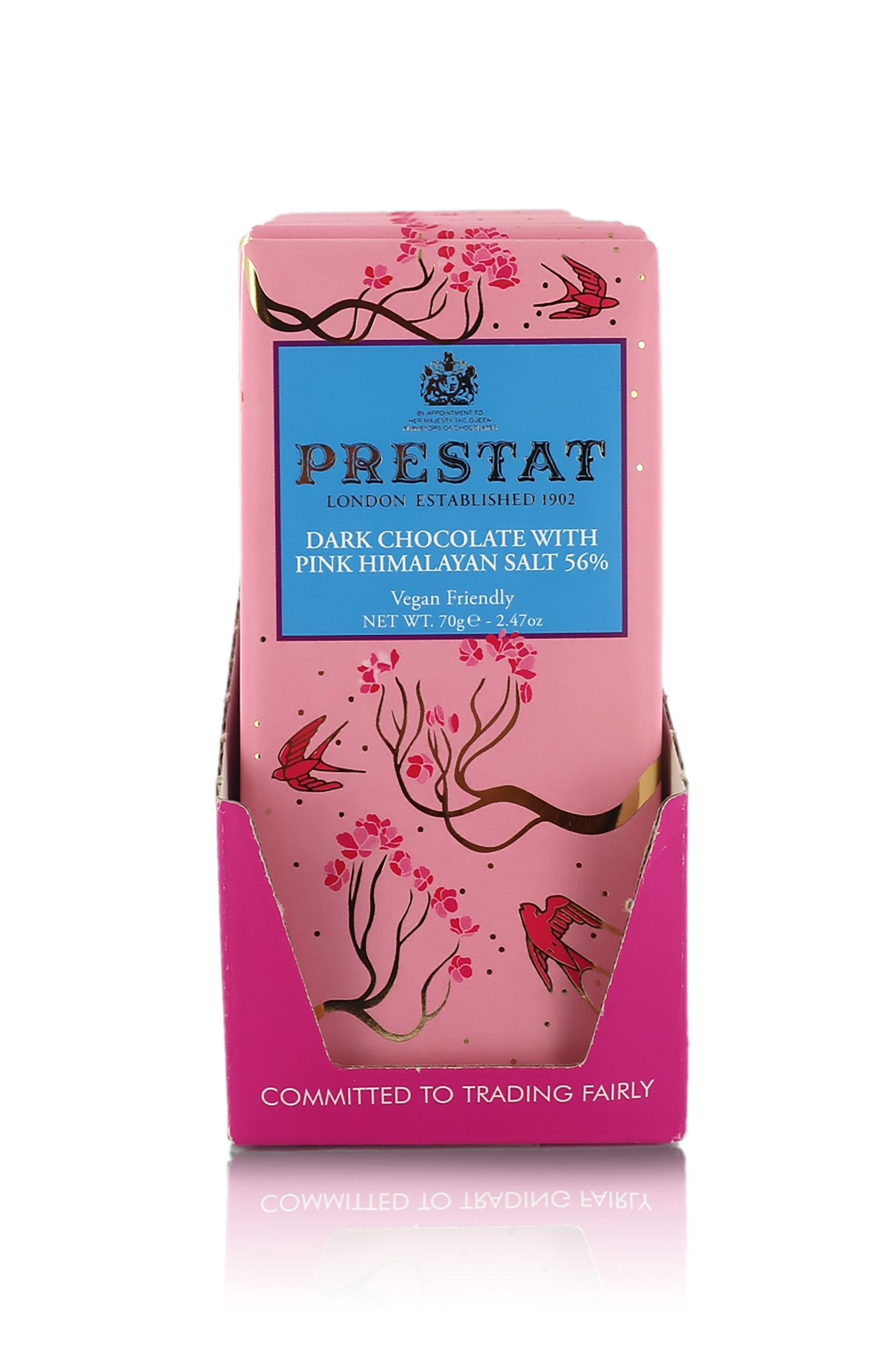 Tavolette dall'incarto "sopra le righe", che catturano lo sguardo e donano allegria solo a guardarle. Sono realizzate con cacao monorigine. Il cacao viene tostato e macinato a bassa temperatura per preservare gli aromi naturali delle qualità dei cacao più fini. Le tavolette di cioccolato fondente Prestat sono vegan-friendy, oltre che essere senza glutine e olio di palma.