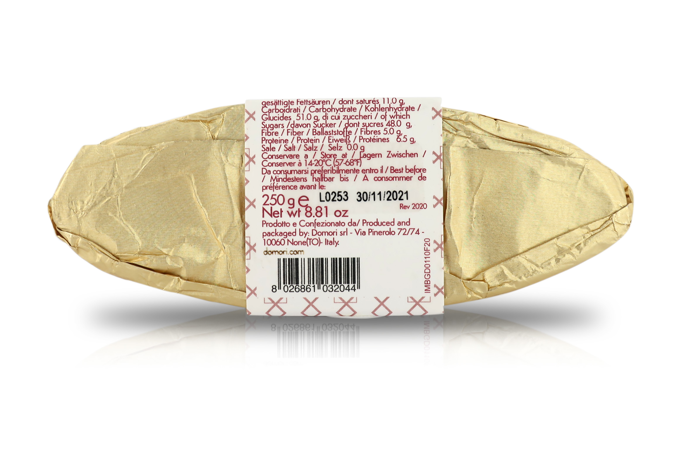 La straordinaria ricetta del gianduiotto Domori prevede l'impiego di pasta di NOCCIOLA Piemonte IGP e cacao fine, in un formato che non passa inosservato. Il formato è innovativo e insolito: si tratta di un maxi gianduiotto, pronto a soddisfare gli appetiti di dolcezza più importanti! Immaginatevi una cena conviviale tra amici, da concludersi con un maxi gianduiotto Domori in mezzo alla tavola: tanta dolcezza tutta da condividere.