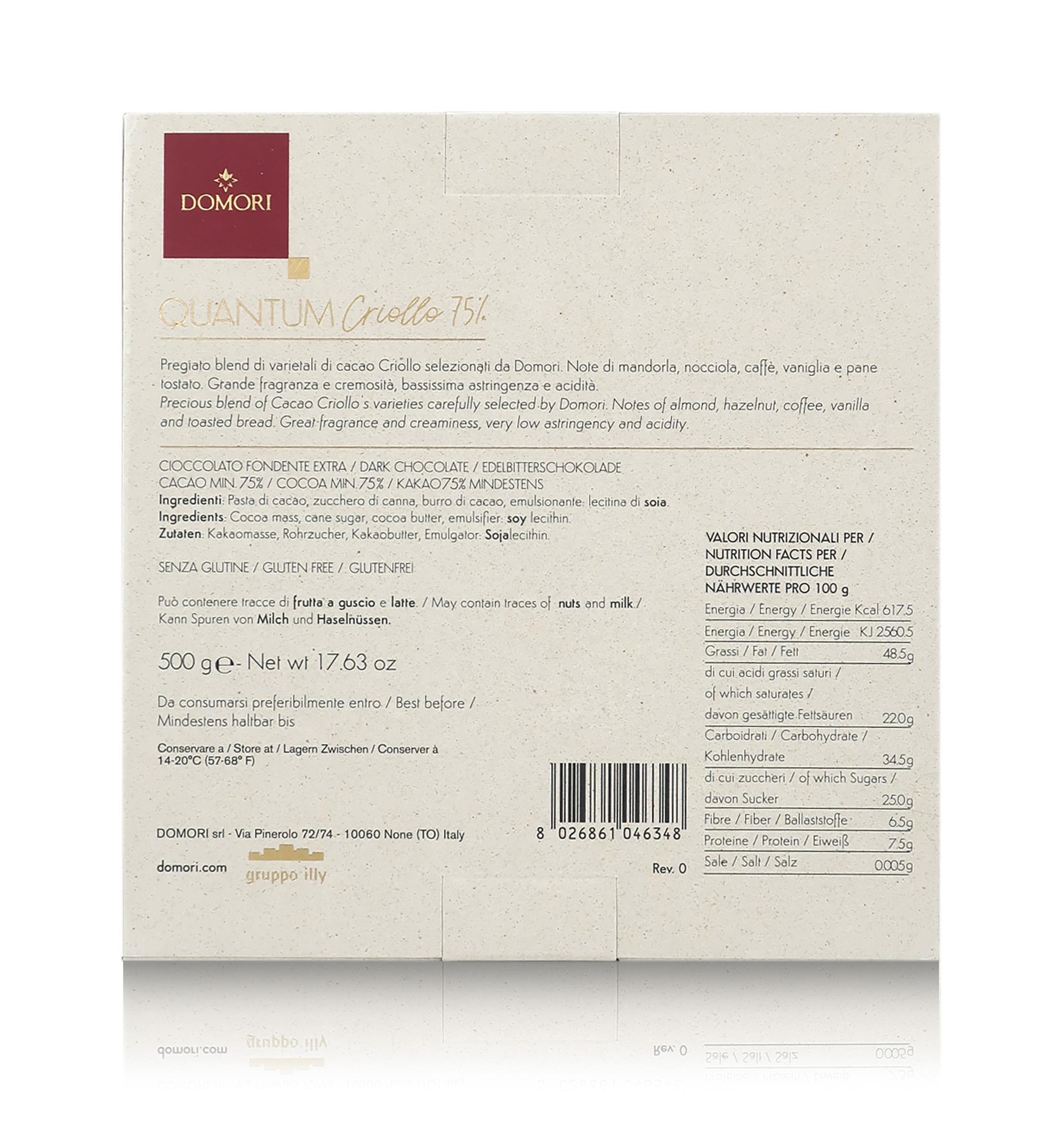 Domori Tavoletta di Cioccolato Fondente Extra, Cacao Criollo 75%, Idea Regalo per Pasqua, 500 Grammi
