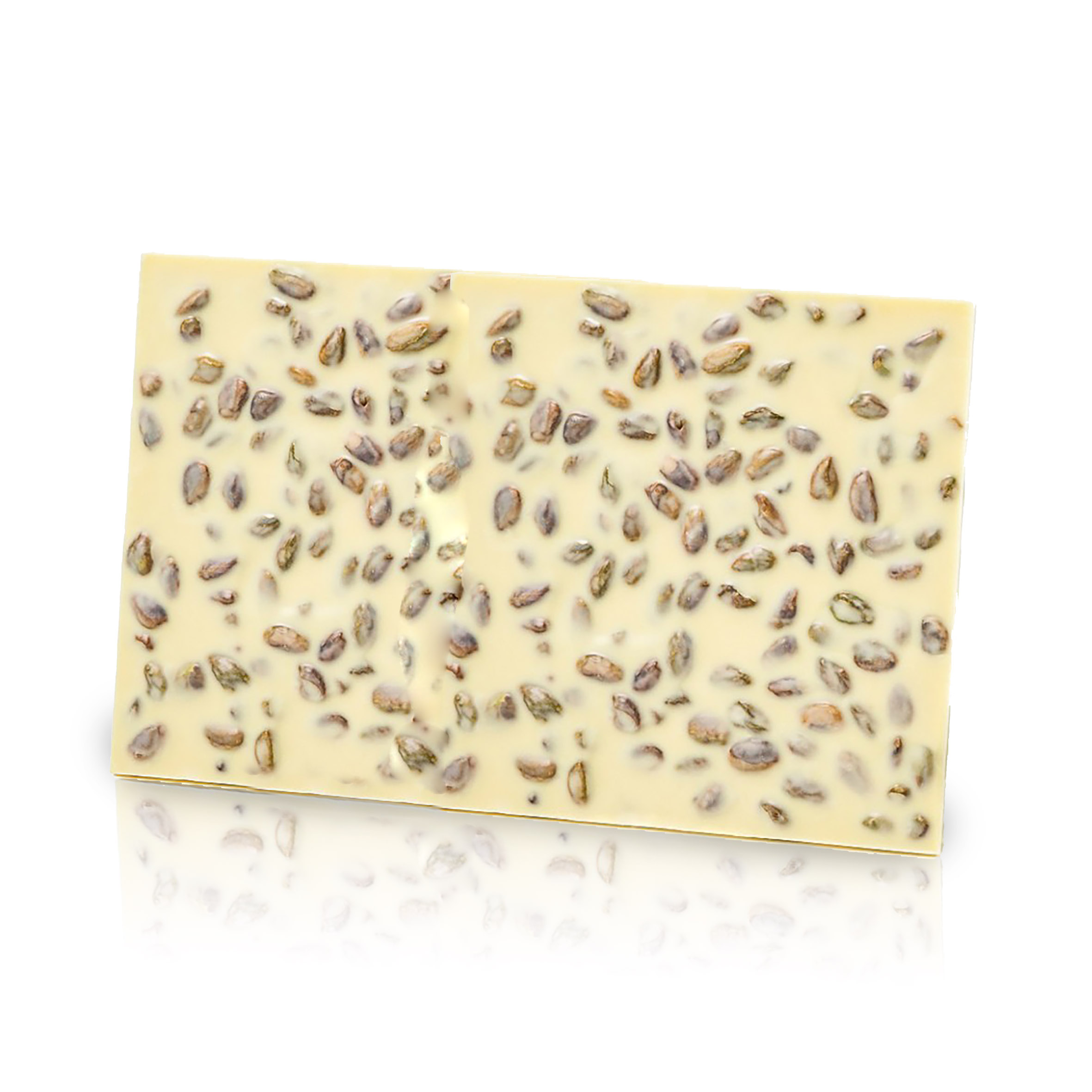 Foglio di Cioccolato Bianco con Pistacchi Tostati Salati, Tavoletta Grande Formato, 800 Grammi