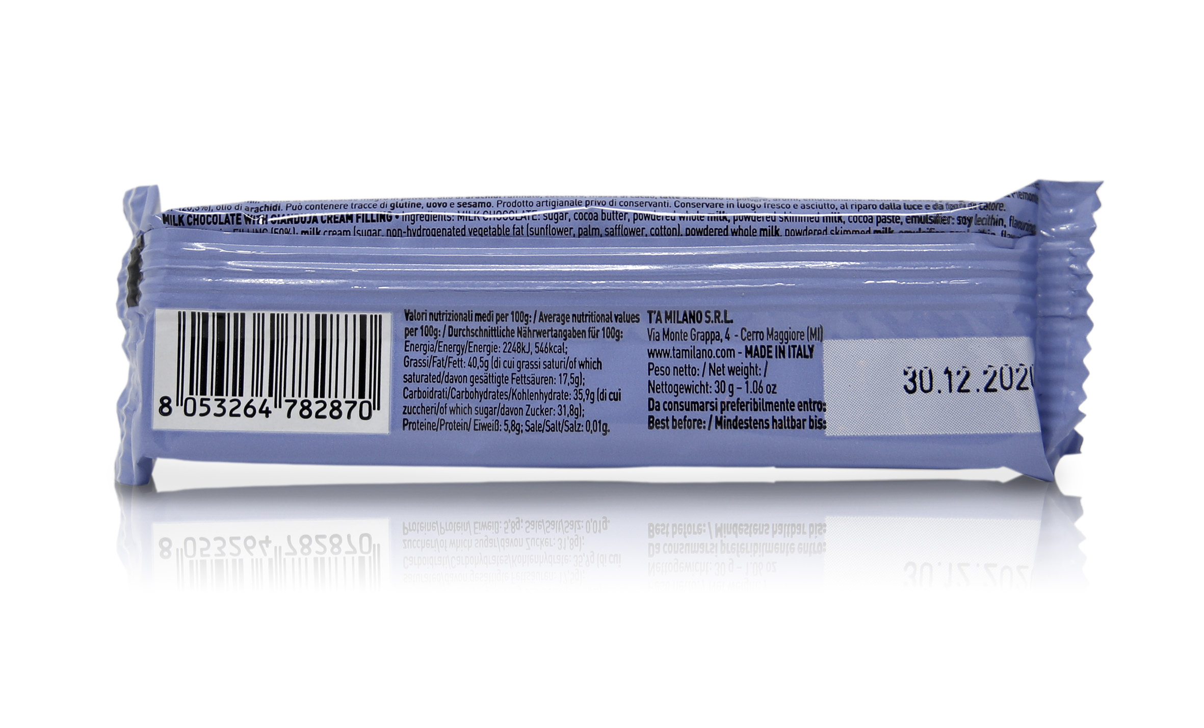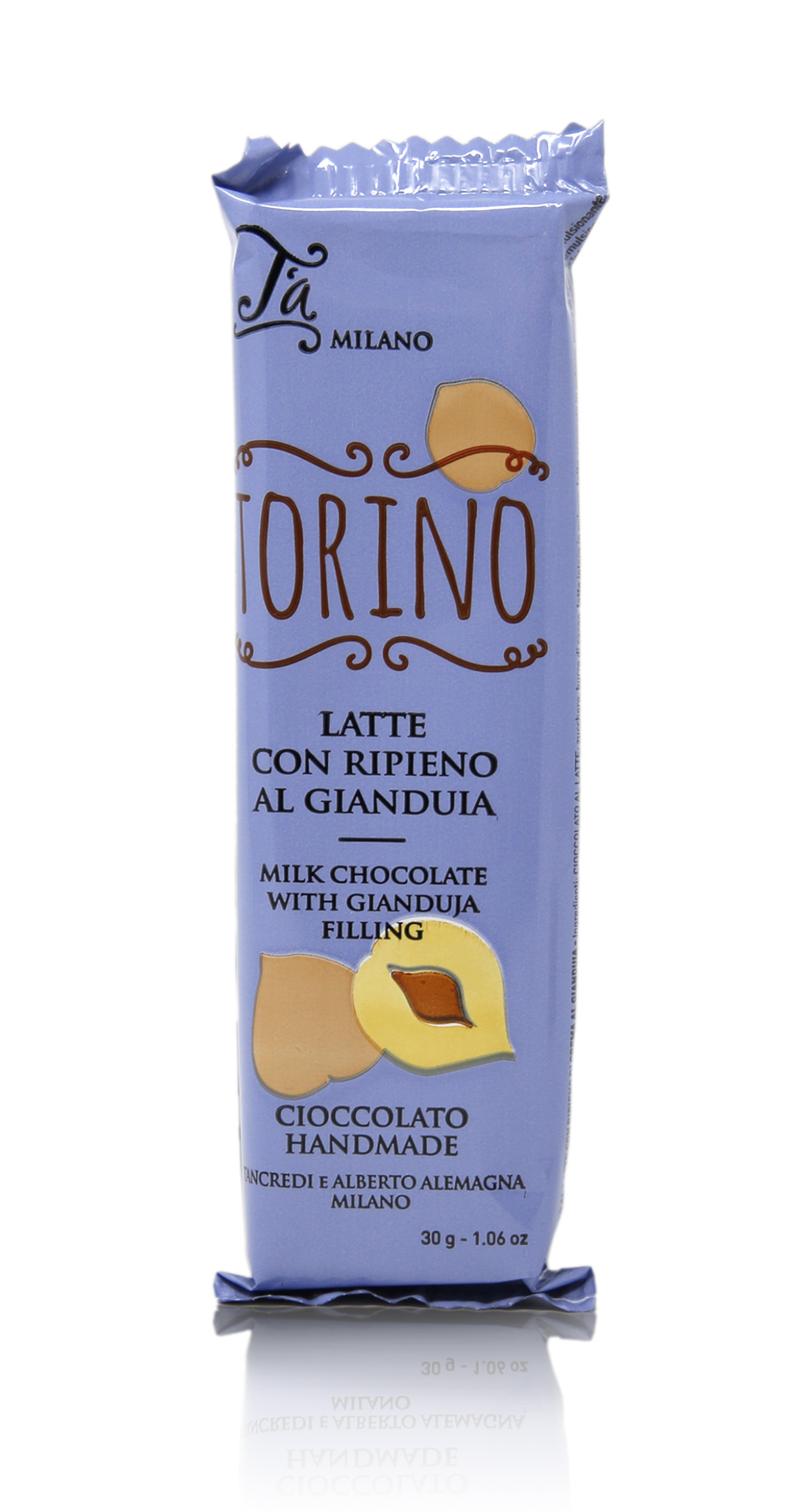 T'a Milano Mini Tavoletta di cioccolato al latte con ripieno alla gianduia, Torino, 30g