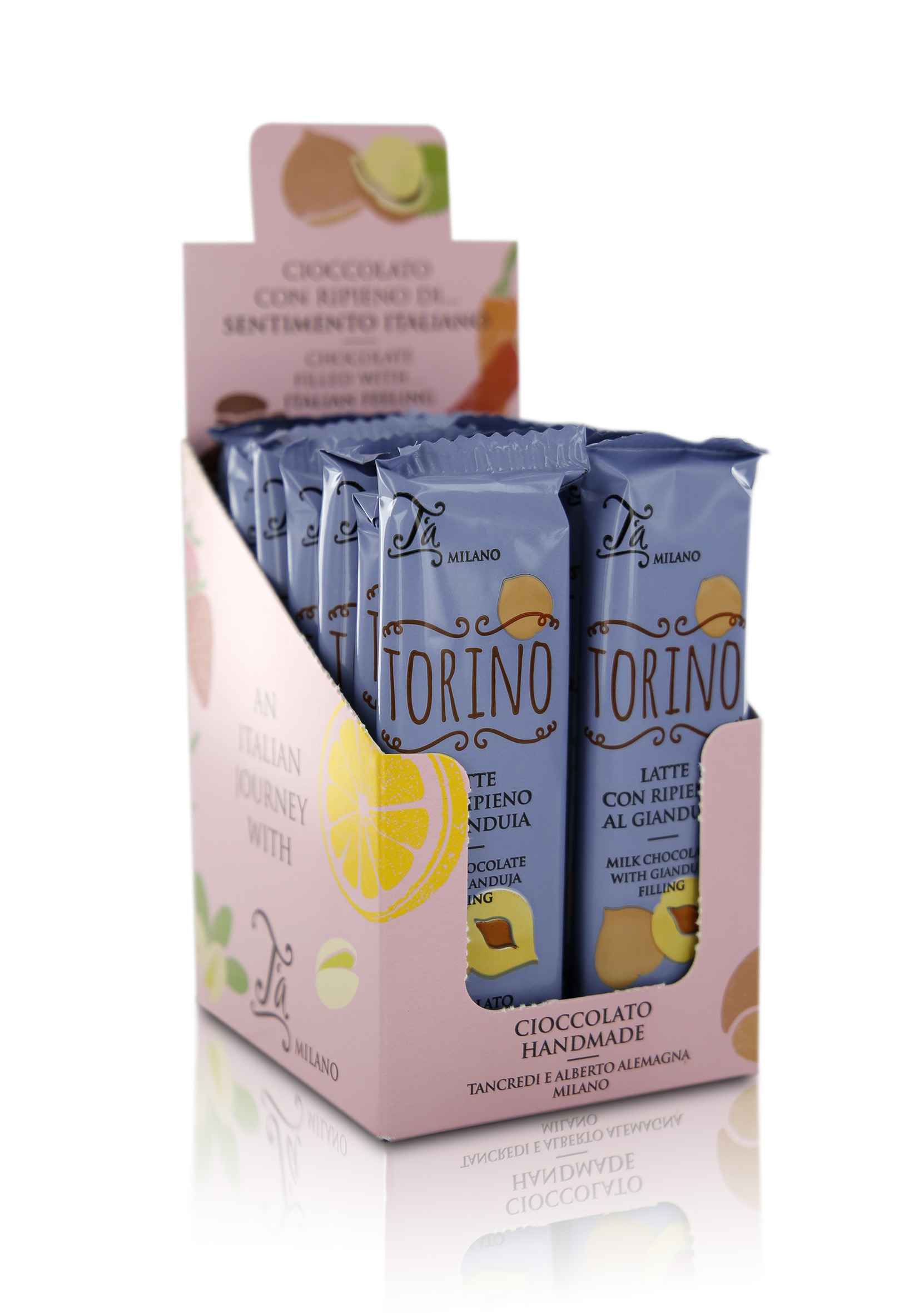La linea delle tavolette di cioccolato T’a Milano, che nasce dall'incontro tra cioccolato pregiato e diversi prodotti tipici della nostra penisola, è un piacevolissimo viaggio, in cui i vari gusti delle tavolette rappresentano le tappe di un itinerario che ci porta alla scoperta delle eccellenze italiane.