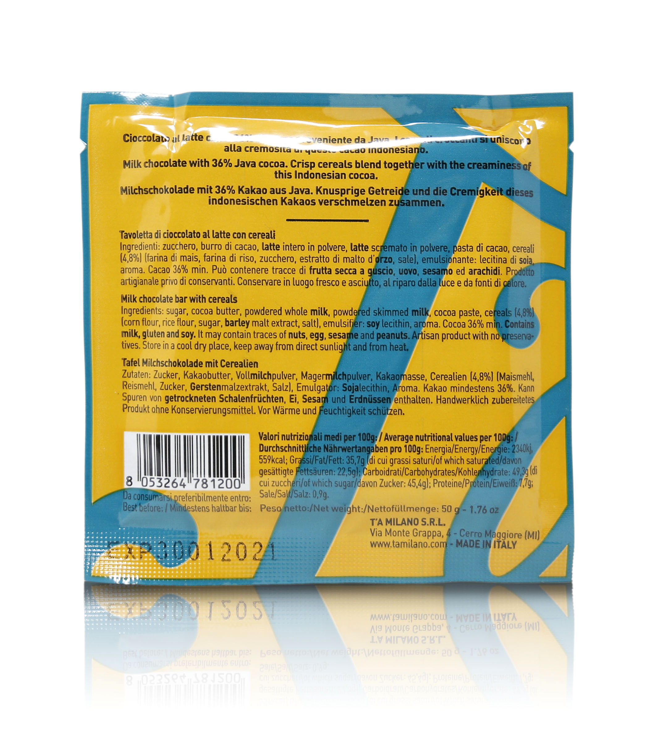 T'a Milano Tavoletta di cioccolato al latte 36% con cereali - 50g