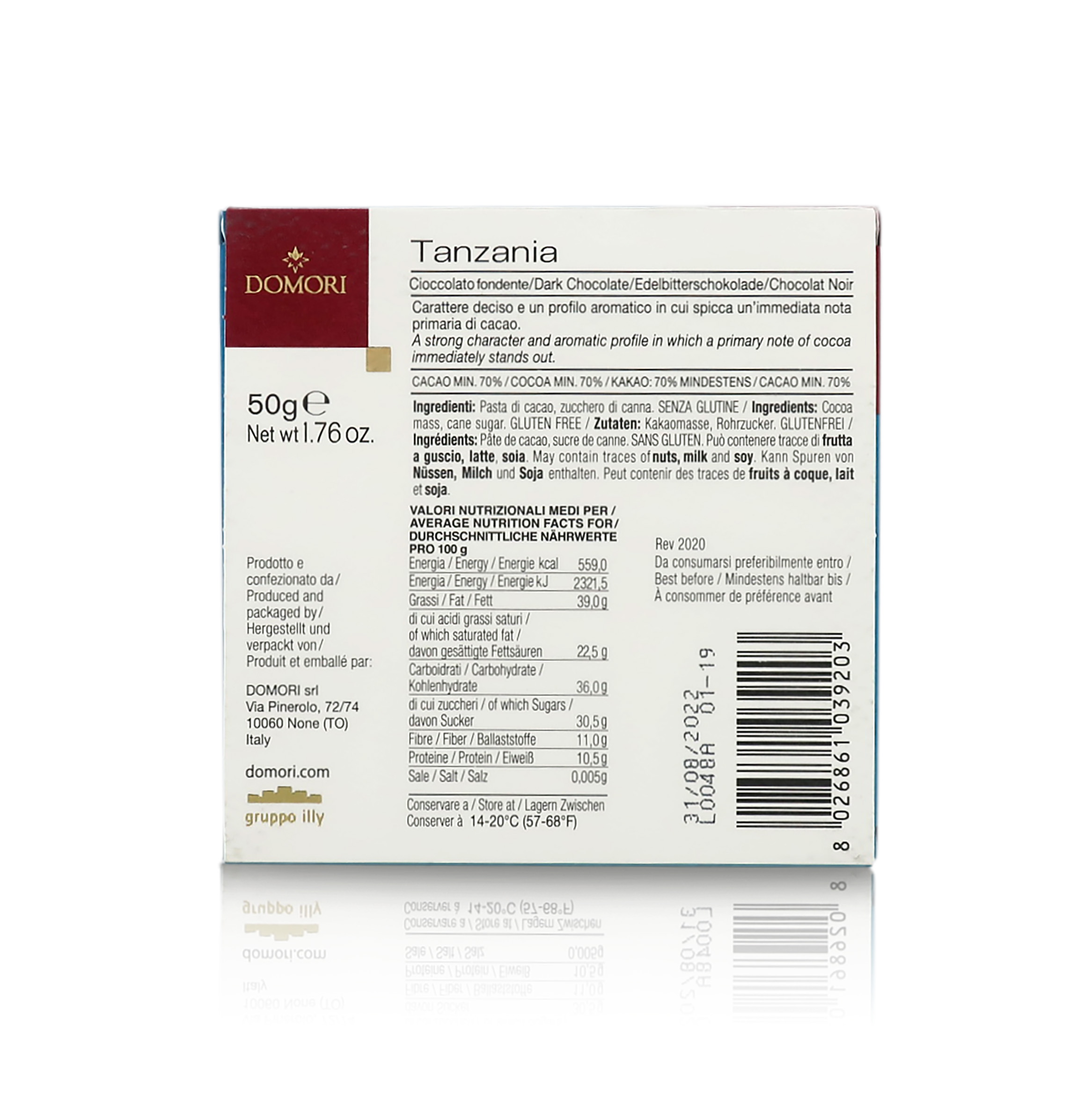 La tavoletta di cacao 70% "Tanzania / Morogoro" da 50g è realizzata con cacao Trinitario della Tanzania raccolto dalla cooperativa Kokoa Kamili che si sta impegnando per contribuire a innalzare il livello qualitativo del cacao prodotto nel loro Paese. In una regione contenuta della Tanzania, Domori ha selezionato alcune varietà straordinarie di cacao dal carattere deciso e dal profilo aromatico, in cui spicca una nota primaria di cacao. La zona di raccolta è la Kilombero Valley, nella regione del Morogoro, che dà il nome a questa tavoletta gourmet. Le operazioni avvengono nel villaggio di Mbingu, a circa dieci ore di auto dalla città principale di Dar-es-Salaam. Questo cioccolato della Tanzania si distingue per le sue note dominanti di cacao e spezie con un finale fruttato.