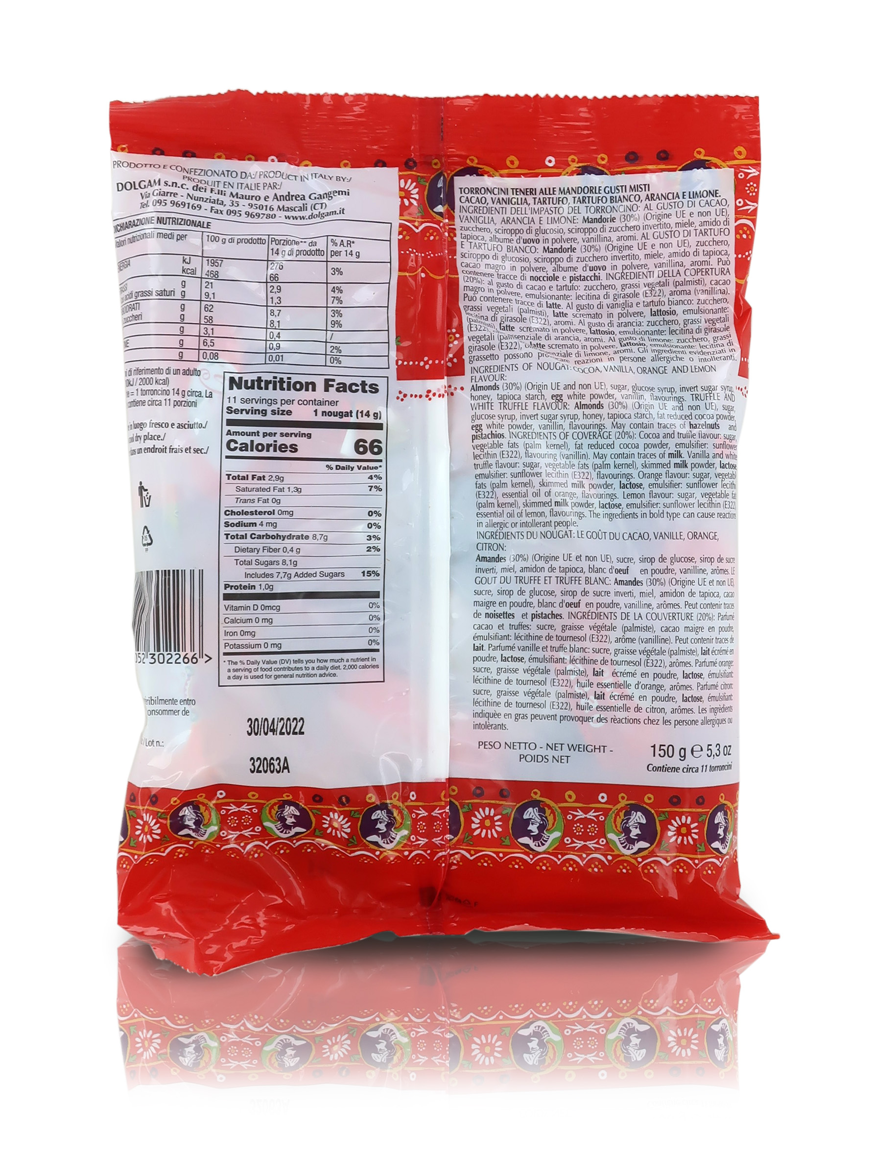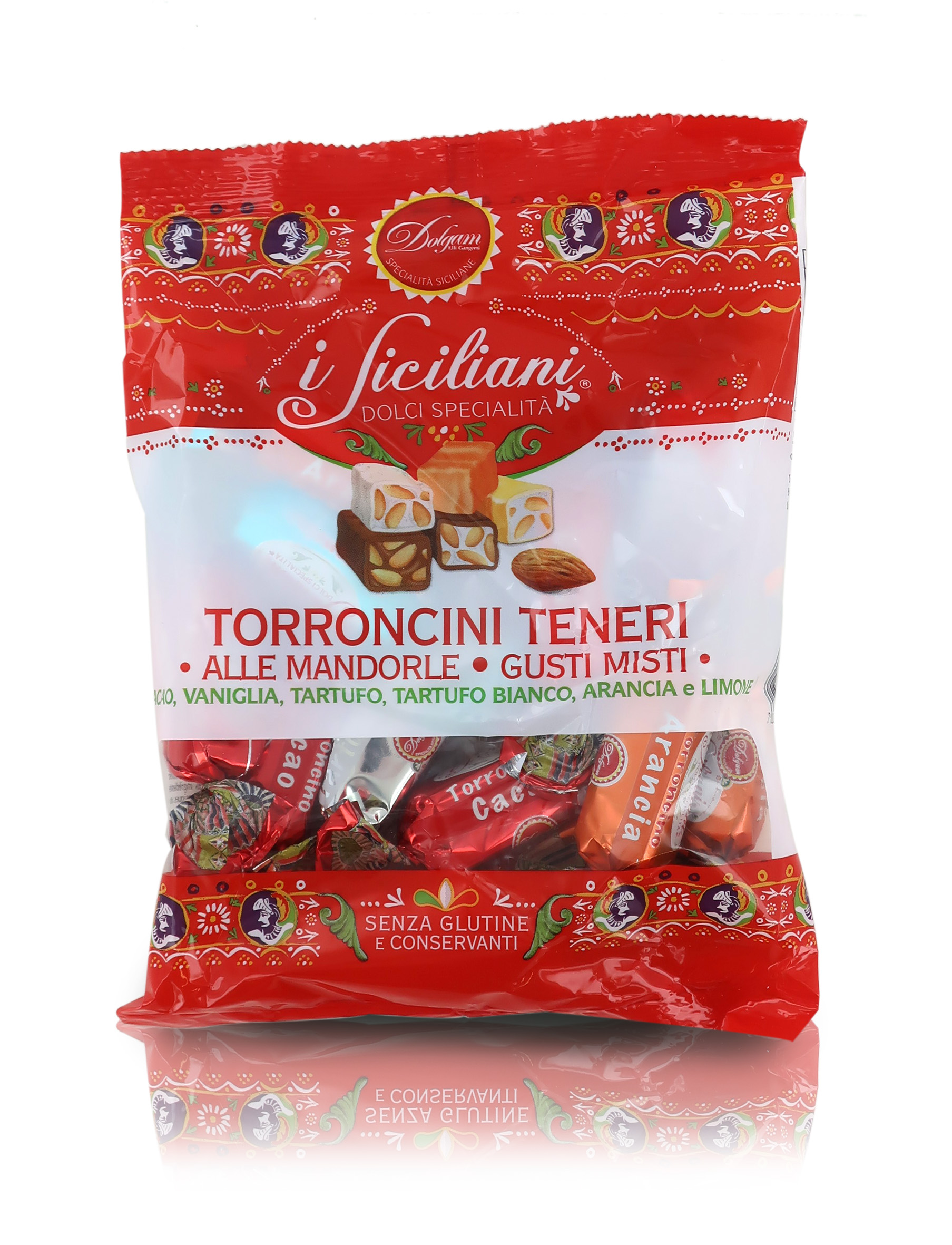 Busta Di Torroncini Morbidi Alle Mandorle, ''I Siciliani'', Con Copertura Nei Gusti Vaniglia, Cioccolato, Tartufo Nero E Bianco, Arancia E Limone, 150 Grammi