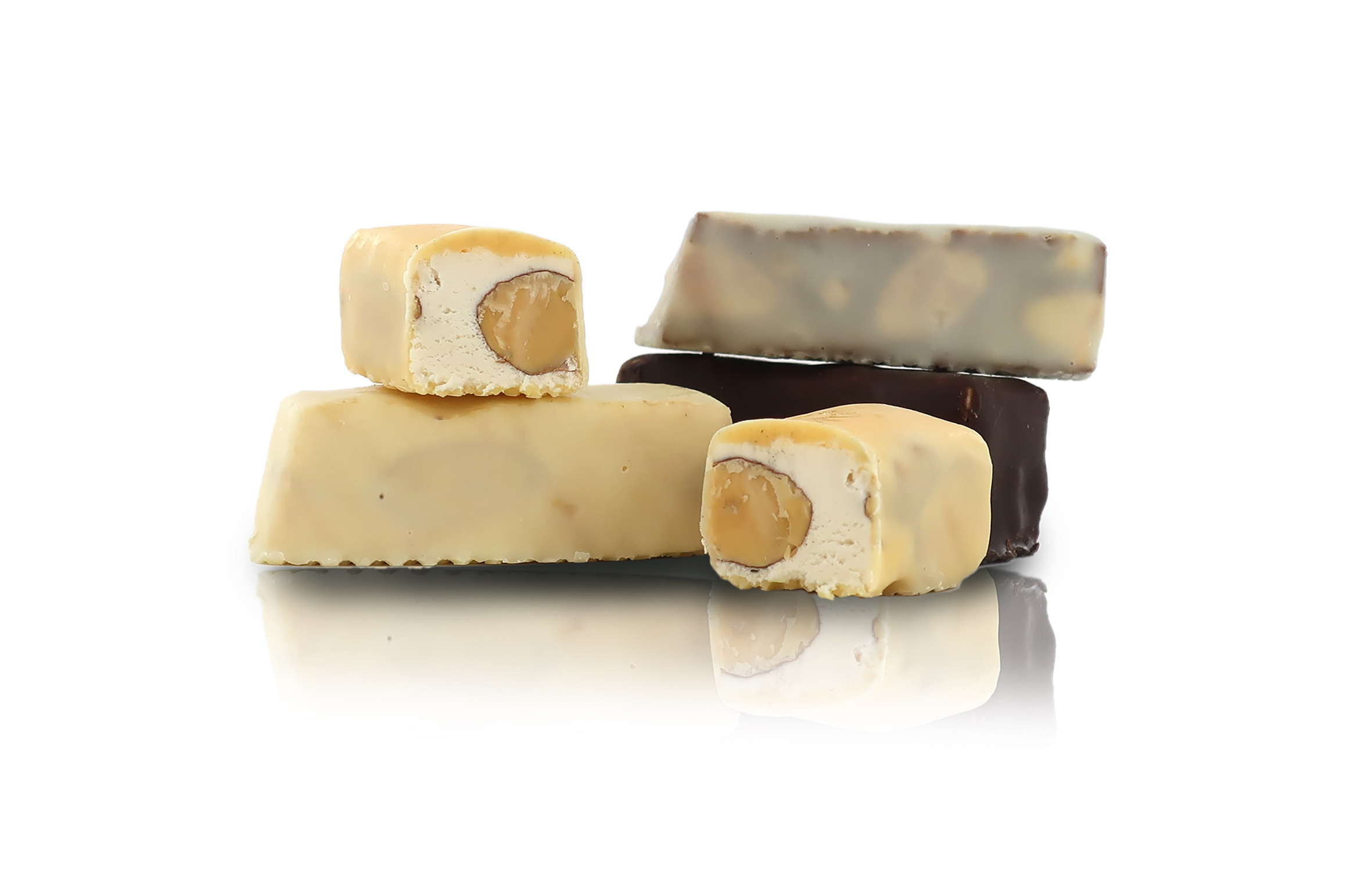 Assortimento di torroncini teneri alle mandorle, con copertura nei gusti vaniglia, cioccolato, tartufo nero e bianco, arancia e limone. Incartati singolarmente, offrono un momento di dolcezza in pieno stile italiano.