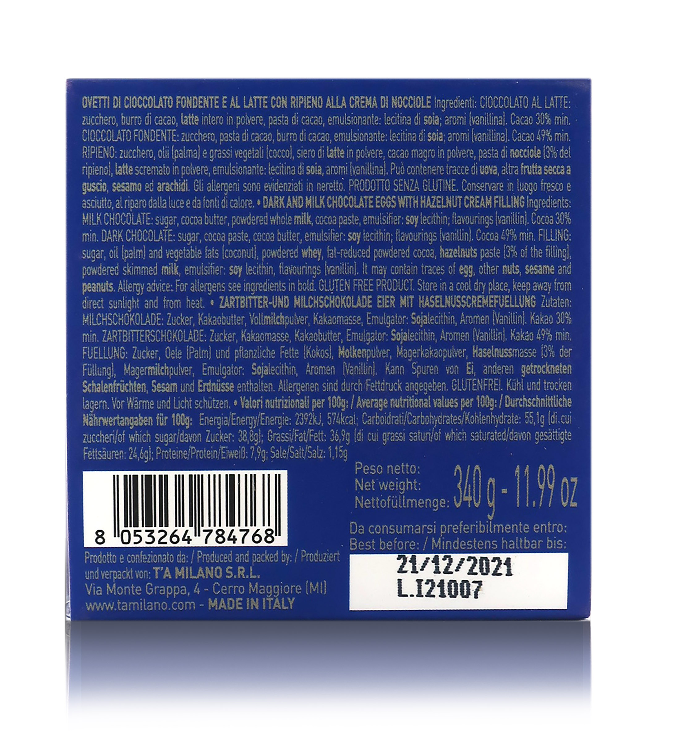T'a Milano Confezione Ovetti Misti Al Cioccolato Al Latte E Fondente Con Ripieno Di Crema Alla Nocciola, 340 Grammi
