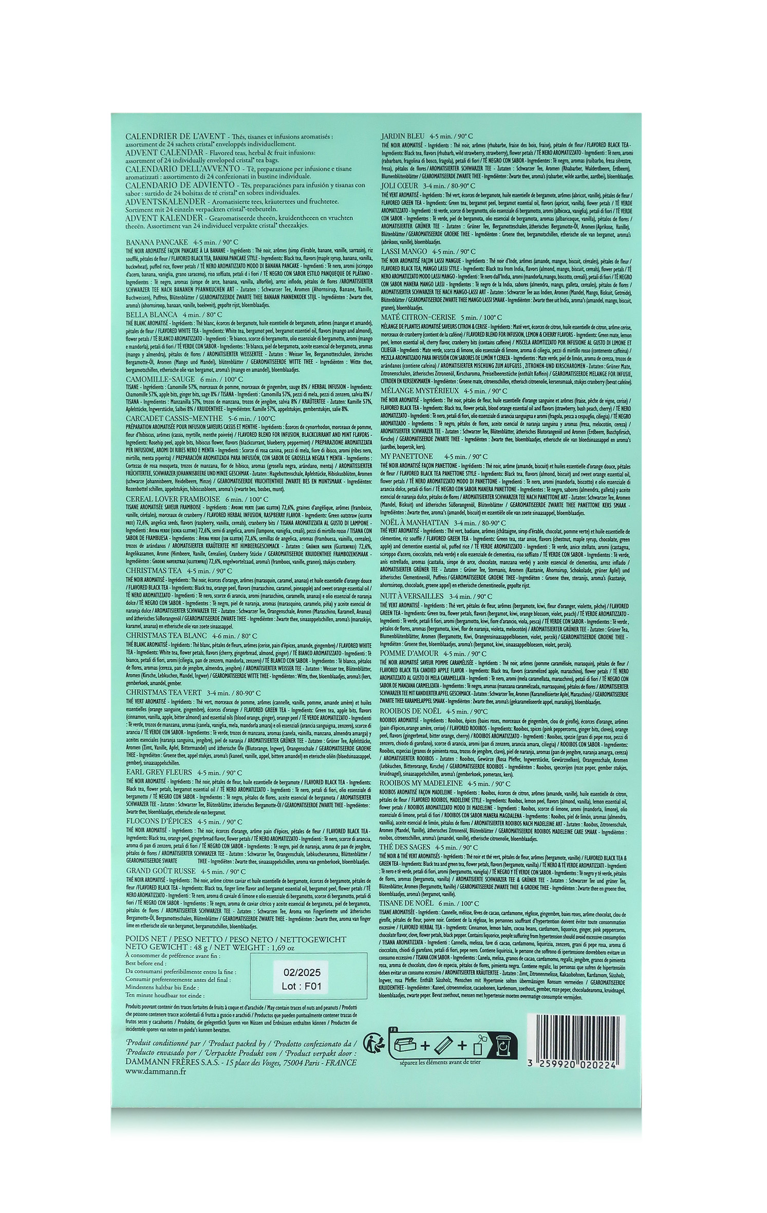 Calendario dell'Avvento Con Tè Natalizi, Edizione Speciale Natale, 24 Bustine, Peso Netto Tè: 48g, Dammann Frerès