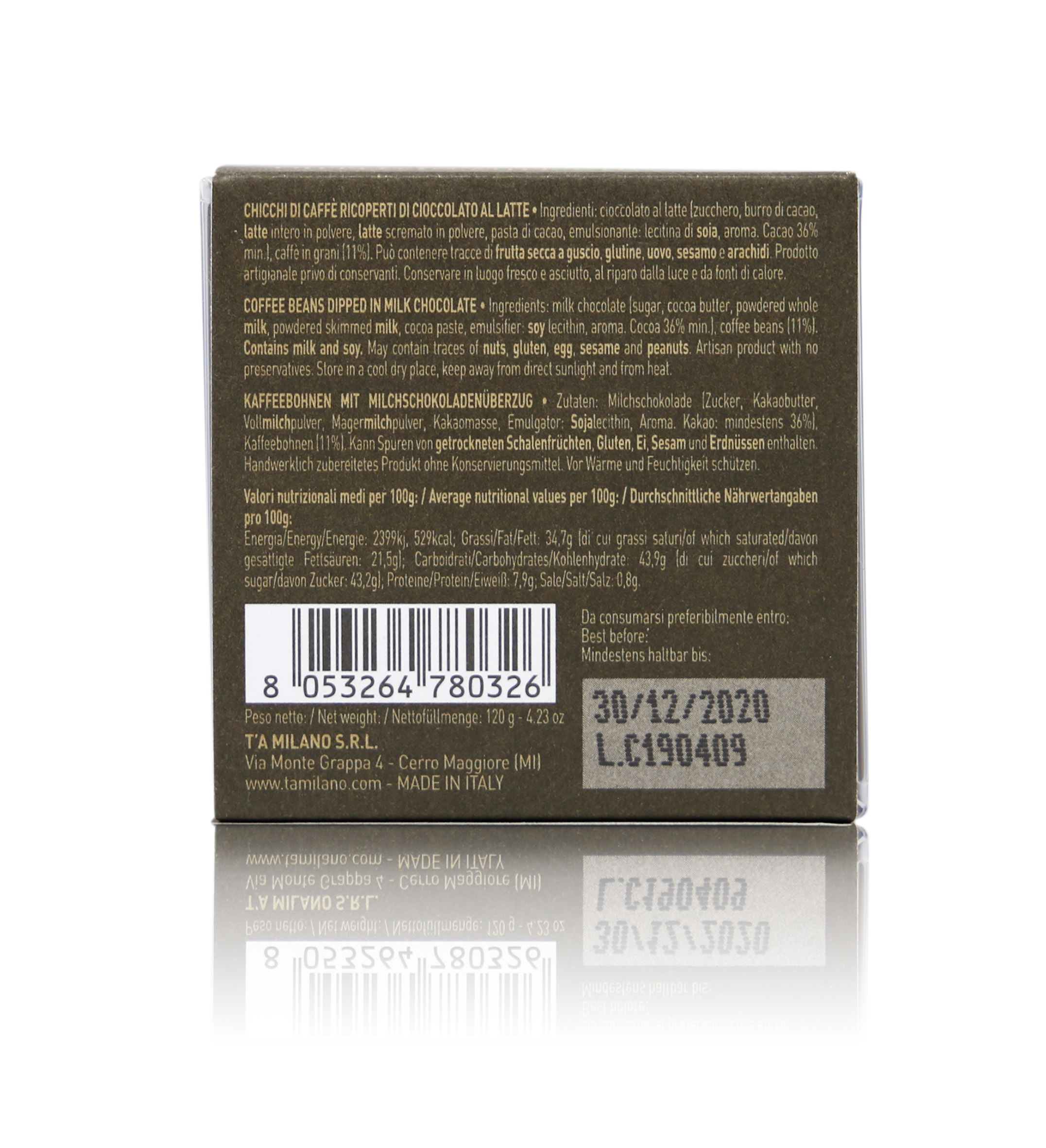 T'a Milano Chicchi di Caffè Ricoperti di Cioccolato al Latte 36%, Dragées con Chicchi di Caffè e Gustosa Copertura di Cioccolato Italiano Gourmet, 120g