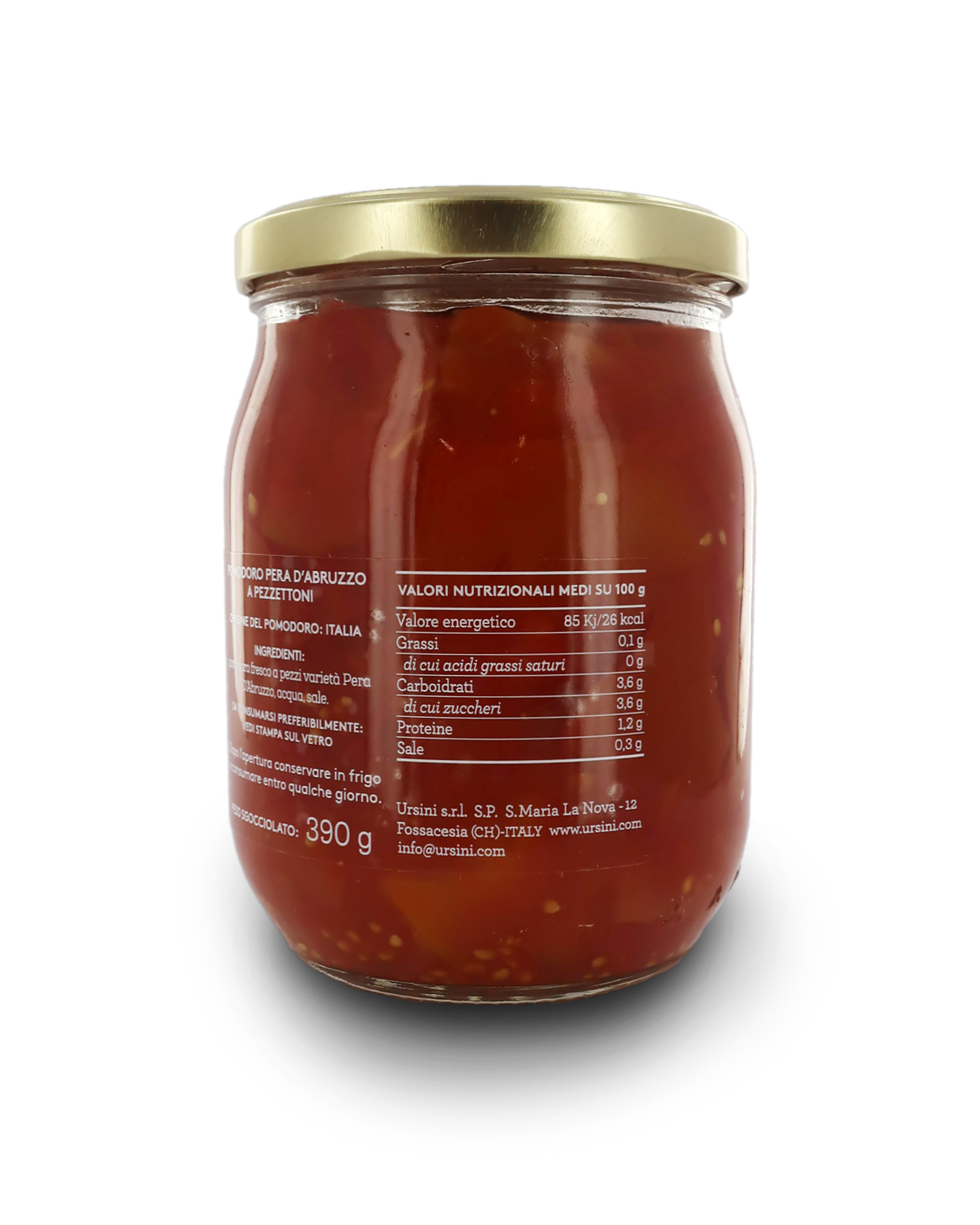 Ingredienti: pomodoro fresco a pezzi varietà Pera d'Abruzzo, acqua, sale.