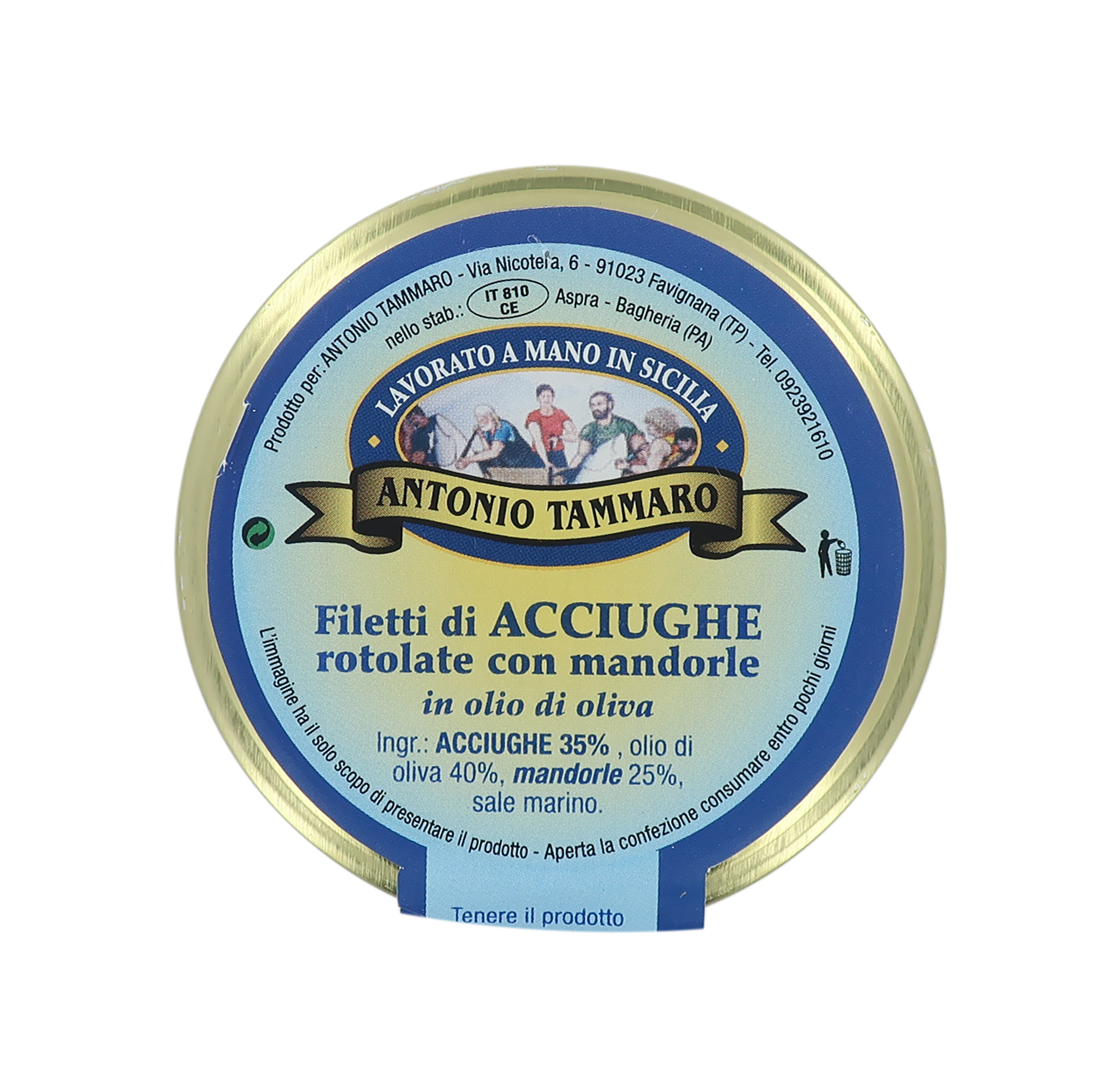 Ingredienti: ACCIUGHE 35%, olio di oliva 40%, MANDORLE 25%, sale marino. Riporre in frigo il vasetto dopo l'apertura.