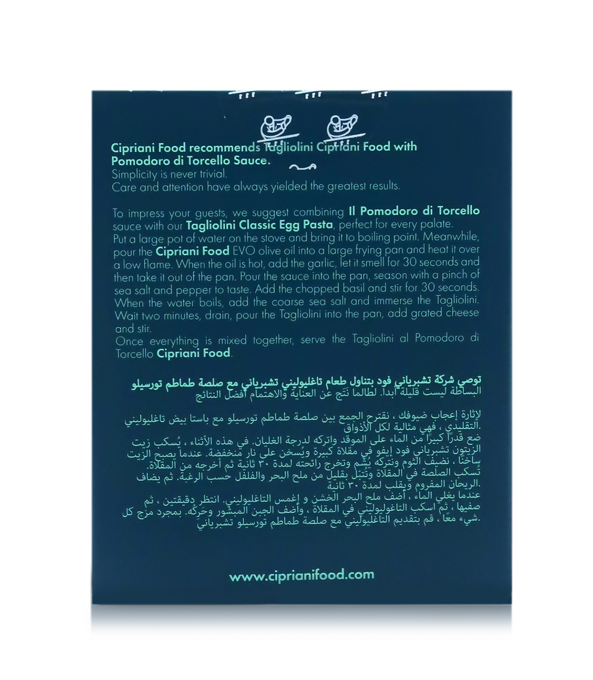 Cipriani Food racchiude una selezione di prodotti che si distingue per gusto e stile. Ottima materia prima, cura nella preparazione e un packaging dal design moderno ed elegante sono i tratti distintivi del brand Cipriani Food, espressione del Made in Italy d'eccellenza.