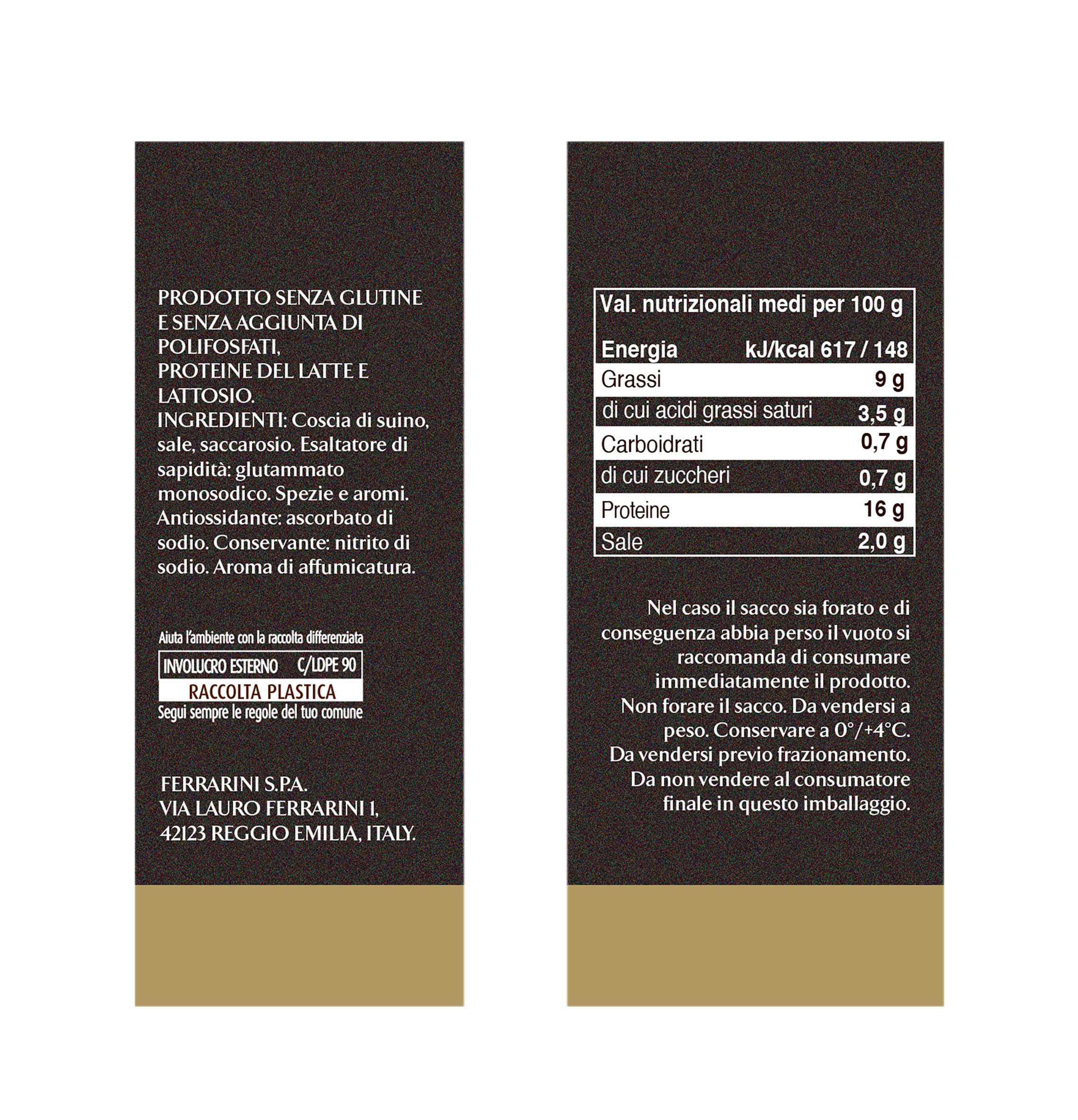 Il Prosciutto Cotto Affumicato Big Fumé Ferrarini è un prodotto di alta qualità che unisce la morbidezza del prosciutto cotto con il gusto intenso e affumicato del prosciutto affumicato. Prodotto dall'azienda italiana Ferrarini, famosa per la produzione di salumi e insaccati di alta qualità, questo prosciutto è ottenuto da carni suine selezionate e lavorato con cura per garantirne il massimo della bontà. Il Prosciutto Ferrarini è sinonimo di qualità e di tradizione, e il Prosciutto Cotto Affumicato Big Fumé non fa eccezione. Prodotto con carni suine selezionate e lavorato con cura, questo prodotto rappresenta una delle eccellenze dell'artigianato salumificio italiano.