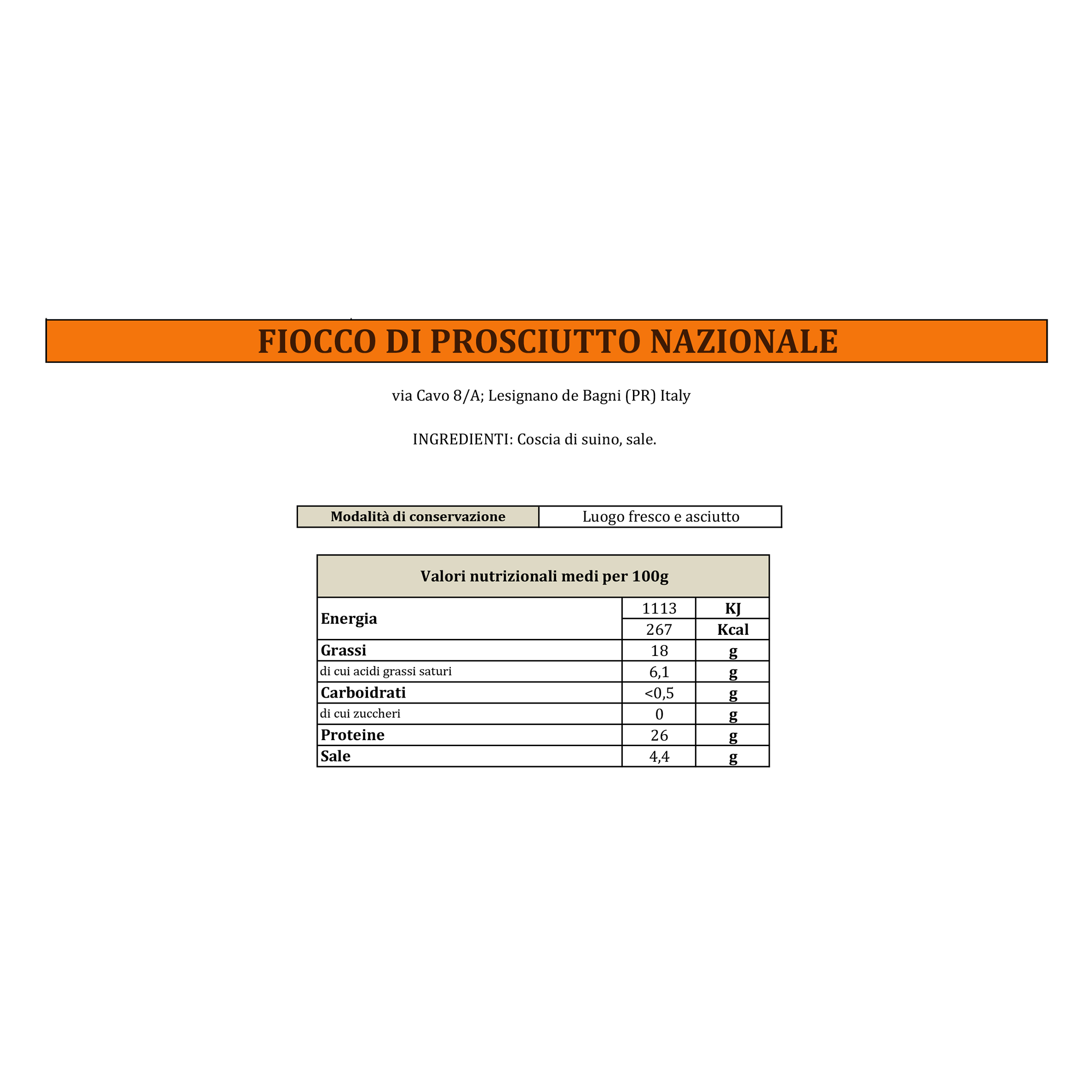 Ferrarini Pezzo di Fiocco di Prosciutto Nazionale Stagionato 6 Mesi, Fiocchetto Ottenuto da Carni Italiane Selezionate, Fiocco a Peso Variabile da 2 a 2,5 Kg