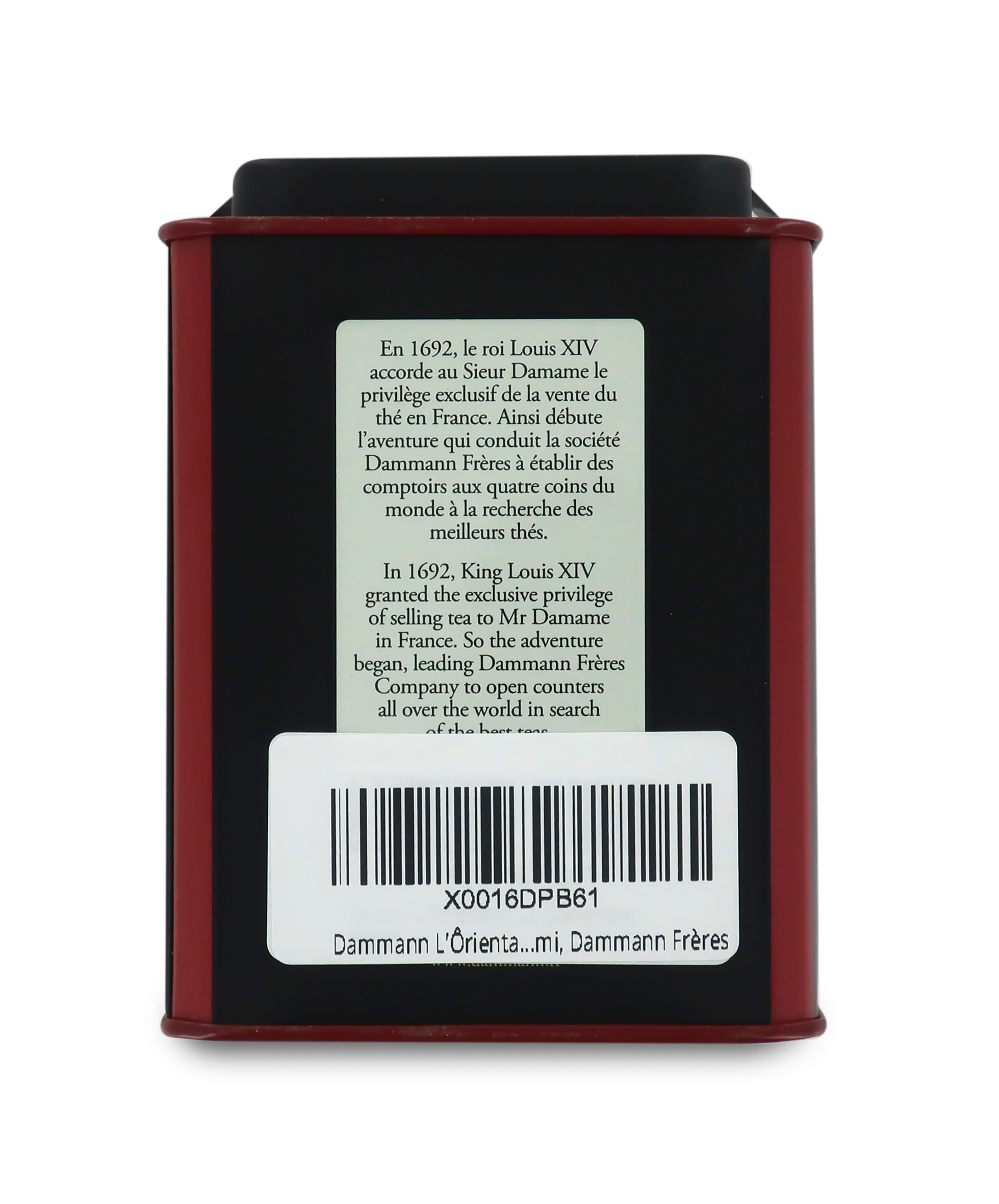 Il tè verde L'Ôriental dall'aroma esotico di Dammann Frères è contenuto in un'elegantissima scatola di latta, perfetta non solo per conservare il prezioso aroma di questo tè pregiato, ma anche da regalare.