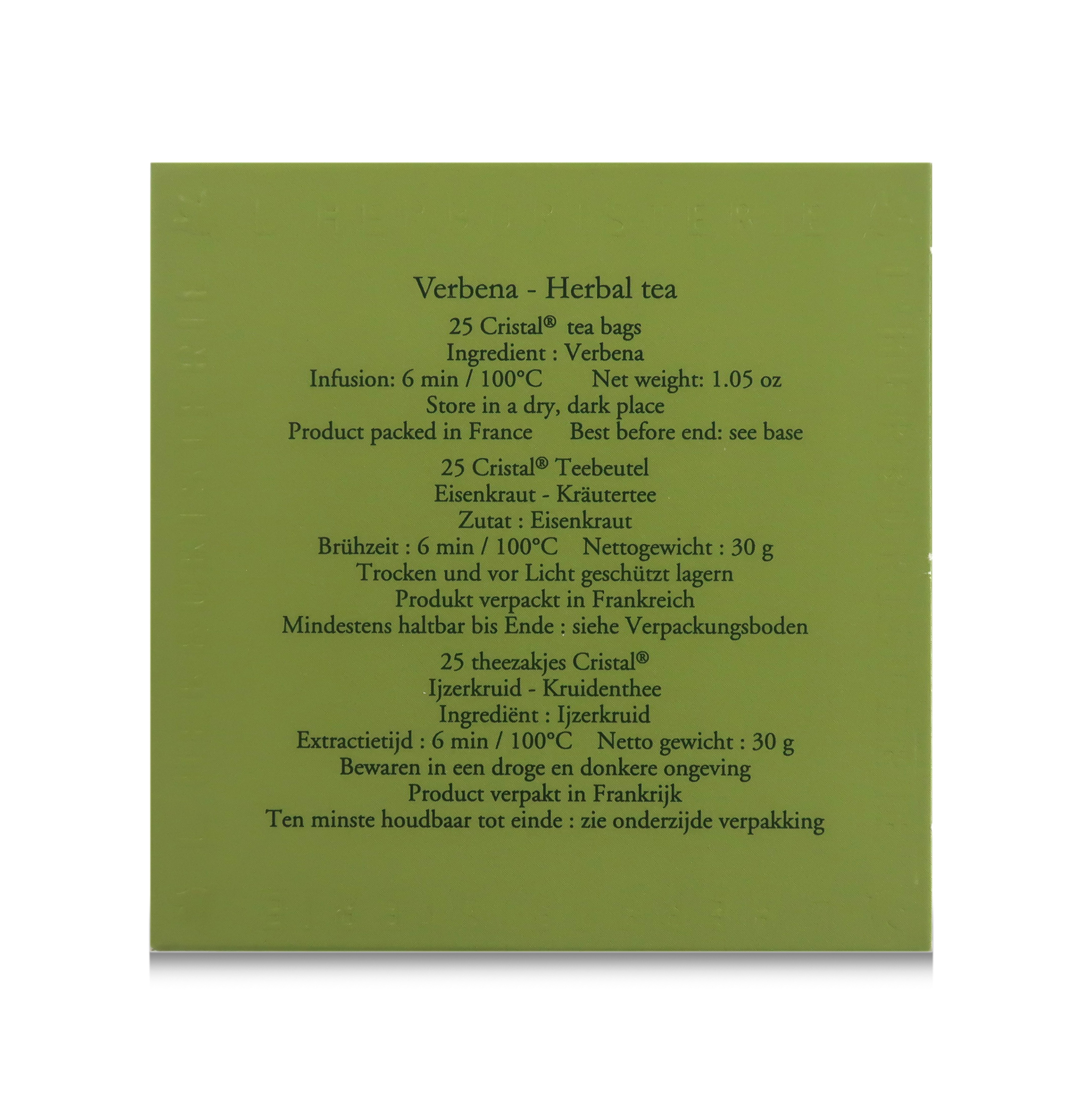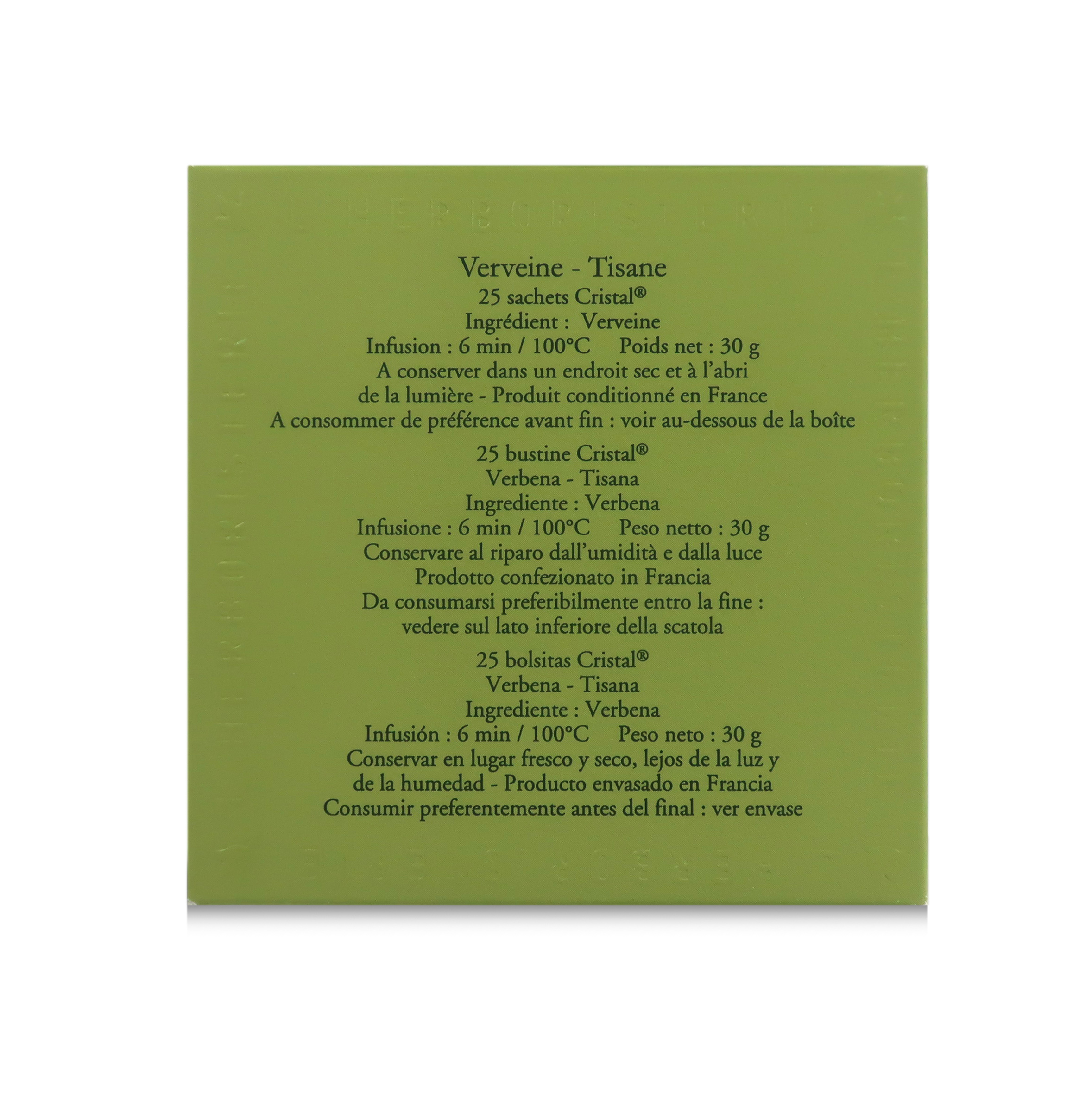 La tisana alla verbena di Dammann Frères è contenuta in esclusive e pratiche bustine "Cristal".