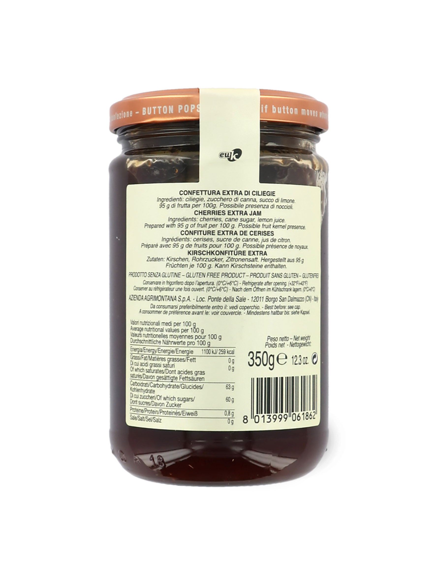 12 vasetti di confettura extra di ciliegie in vasetto da 350 grammi (12 x 350g = 4 chili e 200 grammi di confettura).