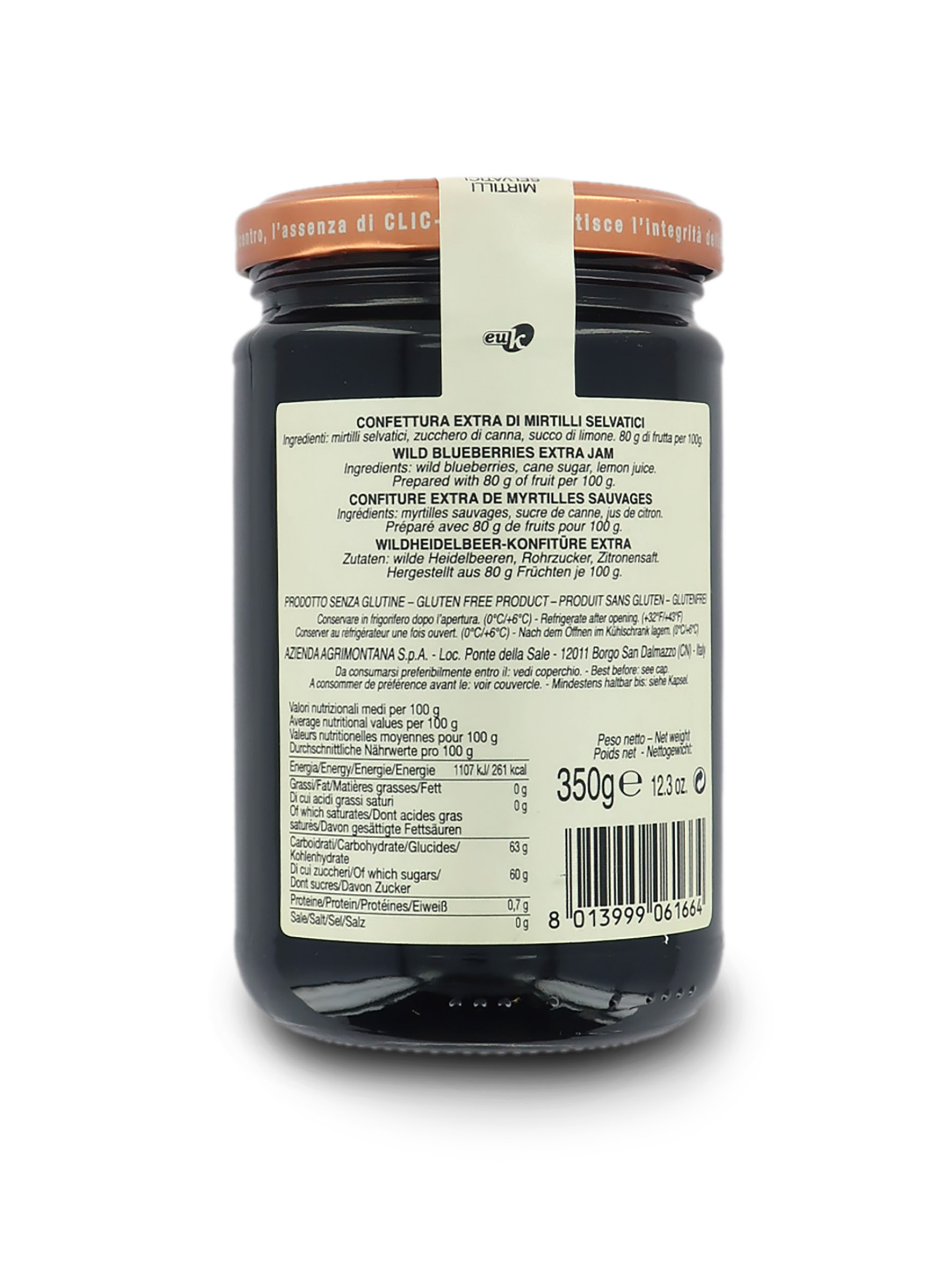 12 vasetti di confettura extra di mirtilli in vasetto da 350 grammi (12 x 350g = 4 chili e 200 grammi di confettura).